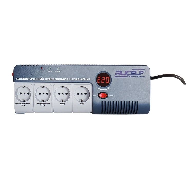 Благодаря своей простоте и функциональности стабилизаторы релейного типа серий SRW и SRV отлично подойдут для защиты электроники вашего дома, офиса или небольшого производства от перепадов электросети. Релейные стабилизаторы напряжения RUCELF сочетают в себе высокую мощность, и скорость стабилизации напряжения. Тип стабилизатора: Релейный Количество фаз: 1 Минимальное входное напряжение: 140.0 (В) Максимальное входное напряжение: 260.0 (В) Выходной ток, не более: 4.0 (А) Выходное напряжение: 220.0 (В) Номинальная мощность: 0.8 (кВт) Полная мощность: 1.0 (кВА) Максимальная рабочая температура: 45.0 (град.) КПД, не менее: 95.0 (%) Габаритные размеры Длина: 335.0 (мм) Высота: 125.0 (мм) Ширина: 78.0 (мм) Вес: 2.3 (кг) Дополнительные характеристики Точность измерения +/-: 6.0 (%) Индикация режима работы: Да Устройство оборудовано четырьмя евророзетками для одновременного подключения до четырех бытовых приборов без использования разветвителей. Преимущества: Простота эксплуатации; Релейный тип стабилизации; Навесная конструкция; Малые габариты и вес; Поддерживает широкий диапазон входного напряжения.