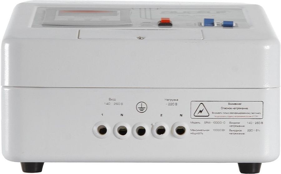 Благодаря своей простоте и функциональности стабилизаторы релейного типа серий SRW и SRV отлично подойдут для защиты электроники вашего дома, офиса или небольшого производства от перепадов электросети. Релейные стабилизаторы напряжения RUCELF сочетают в себе высокую мощность, и скорость стабилизации напряжения. Тип стабилизатора - релейный Активная мощность - 7 кВт Полная мощность - 10 кВ·А Тип входного напряжения - однофазное (220 В) Входное рабочее напряжение - 130-270 В Точность стабилизации - 6% Выходное напряжение - 207-232 В КПД - 97% Форма выходного сигнала - синусоида без искажений Защита - от короткого замыкания, от перегрева, от повышенного напряжения, от помех Размещение - настенное Тип охлаждения - естественное Отображение информации - светодиодные индикаторы (вольтметр отображает выходное напряжение) Bypass - есть Клеммы - есть Класс защиты - IP20 Влажность окружающей среды - 80% (макс.) Рабочая температура - 5 °C 45 °C Габариты, ШхВхГ - 265х385х155 мм Масса - 15 кг