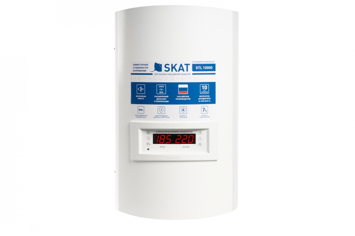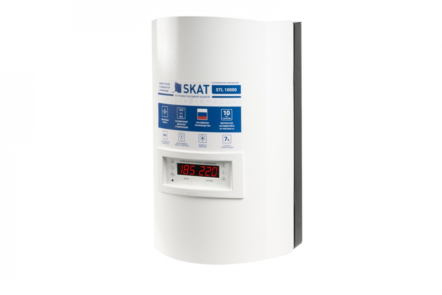SKAT STL-10000 исп. Н стабилизатор напряжения с симисторными ключами управления. Качественная элементная база, цифровая индикация, безопасное подключение и революционная форма корпуса. Напряжение питающей сети 220 В, частотой 50+1 Гц, В: 220 Рабочий диапазон входного напряжения, В: 120...280 Рабочий диапазон выходного напряжения, В: 205...235 Предельный диапазон входного напряжения, В: 80...295* Точность стабилизации, %: 7 Количество ступеней стабилизации, шт.: 9 Ток нагрузки (i ном) , А, не более: 27 Номинальная мощность нагрузки, ВА, не более: 6500 Максимальная, пиковая мощность нагрузки, ВА, не более: 10000** Среднее время переключения, мс, не более: 10 Мощность, потребляемая от сети без нагрузки, ВА, не более: 34 Максимальное сечение провода, зажимаемого в клеммах колодки, мм2: 10 Габаритные размеры ШхГхВ (с/без упаковки), мм, не более: 315x245x490 / 310x240x485 Macca, HETTO (БРУТТО), кг, не более: 19 (21) Степень защиты оболочкой по 14254-2015: ІР20 Диапазон рабочих температур: -10...+40 Примечание: Номиналы напряжений указаны с допуском ±2В. *Режим работы с расширенным диапазоном сетевого напряжения. **В течение 20 секунд. Особенности SKAT STL-10000 исп. Н Электронный стабилизатор на симисторных ключах 9/16 ступеней обеспечивают мягкое переключение и точность 7%; Широкий диапазон стабилизации от 120 до 280 В в штатном режиме. И от 80 до 295 В в расширенном режиме (с меньшей точностью стабилизации, но достаточной для работы бытовой техники); Бесшумная работа за счет системы естественного охлаждения без вентилятора; Экономичность в режиме холостого хода потребляют до 2-х раз меньше электроэнергии, чем инверторные аналоги; Не создают радиопомех безопасны для чувствительного электронного оборудования (приборов, в состав которых входят микропроцессоры, а также аудио-/видео- устройства); Технология ZERO-CROSS переключение ступеней стабилизации происходит в точке перехода синусоиды напряжения через ноль. Нет характерной помехи на выходе, что существенно продлевает срок службы подключенных в сеть приборов; Защита от перегрева 4 температурных датчика; Тройная защита от перегрузки и короткого замыкания независимое реле отключения, автоматичекий выключатель, 2 датчика тока; Запас надежности силовой части 400% 4-х кратный запас рабочего тока симисторов позволяет работать стабилизатору без повышенного износа даже при максимальной нагрузке; Система самодиагностики контролирует работоспособность устройства, отображает причину аварийного отключения нагрузки; Честная индикация дисплей отображает реальное выходное напряжение; Высокое качество сборки, 100% выходной контроль качества; Возможность трехфазного подключения 3-х однофазных стабилизаторов по схеме «звезда». Схема трехфазного подключения; Напольная или настенная установка (при помощи кронштейнов); Российское производство.