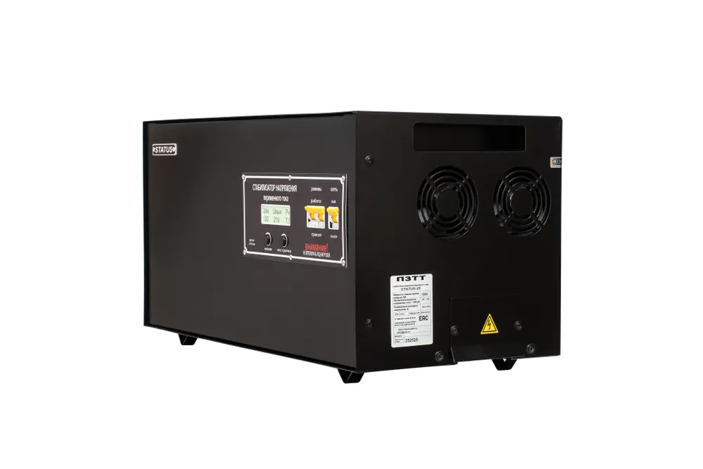 В основу работы стабилизатора STATUS заложен принцип регулирования напряжения методом переключения обмоток автотрансформатора тиристорными ключами. Тип: ступенчатый с вольт добавкой Управление: микропроцессорное Индикация: ЖКИ Мощность подключаемой нагрузки, ВА: 8000 Номинальное напряжение в сети: 220 В, 50 Гц Предельный диапазон входного напряжения: 130 ÷ 260 В Номинальный диапазон входного напряжения: 160 ÷ 250 В Точность стабилизации выходного напряжения: ± 2.5% Активная потребляемая мощность на холостом ходу: от 12 до 45 Вт КПД: не менее 0,96 Отклик на возмущение в сети не более: 40 мс Скорость восстановления Uном не менее: 500 В/с Допустимая перегрузка 10%: в течение 10 сек Защита: от перегрузки по току, повышенного/пониженного напряжения, сетевых помех Дополнительная защита: автоматический выключатель с тепловой и электромагнитной отсечкой Охлаждение: естественное Влажность: Не более 80% при 250 С Класс защиты: IP20 Климатическое исполнение: УХЛ 4,2 Уровень шума: Менее 40dB на расстоянии 1м при 100% нагрузке Вес, кг: 26 Габаритные размеры ШхГхВ, мм: 530×276×290 Однофазный стабилизатор напряжения STATUS предназначен для обеспечения стабилизированным электропитанием различных потребителей в условиях больших по значению и длительности отклонений сетевого напряжения 220В. Стабилизаторы напряжения STATUS относятся к классу высокоточных стабилизаторов, что и обусловило их применение электроснабжение оборудования, особо критичного к качеству электропитания. К нему относятся медицинское и лабораторное оборудование, метрологическое, телекоммуникационное и любое другое электронное оборудование, работающие в тяжелых условиях промышленных электросетей. Отличительной особенностью данных моделей стабилизаторов является их высокая точность стабилизации при 4-кратной (в течение 10 секунд) перегрузочной способности. Второй особенностью, является уникальный предельный диапазон входного напряжения, при котором стабилизаторы решают все поставленные перед ними задачи. Третьей особенностью, является их более эффективная энергосберегающая функция по сравнению с другими стабилизаторами. Возможность перевода стабилизаторов в «эконом режим» при их высокой точности стабилизации дает хороший результат по экономии электроэнергии. Условия эксплуатации. Окружающая среда невзрывоопасная, не содержащая токопроводящей пыли, агрессивных паров и газов в концентрациях разрушающих металлы и изоляцию Диапазон температуры окружающей среды, ºС от -45 до +45 Относительная влажность воздуха при температуре 25ºС, не более 80% Атмосферное давление, кПа не более 107 Класс защиты IP 20 (не герметизирован).