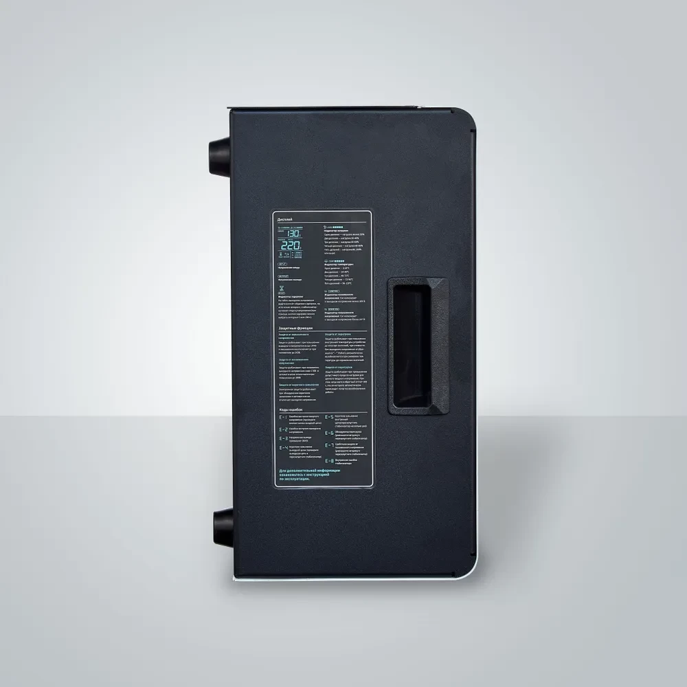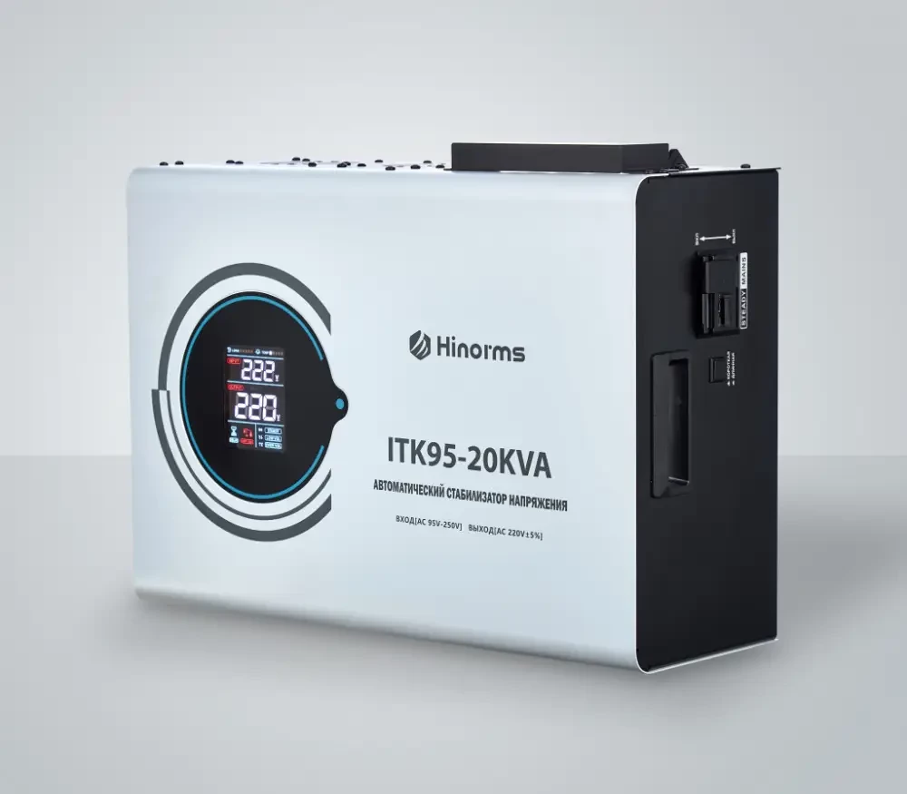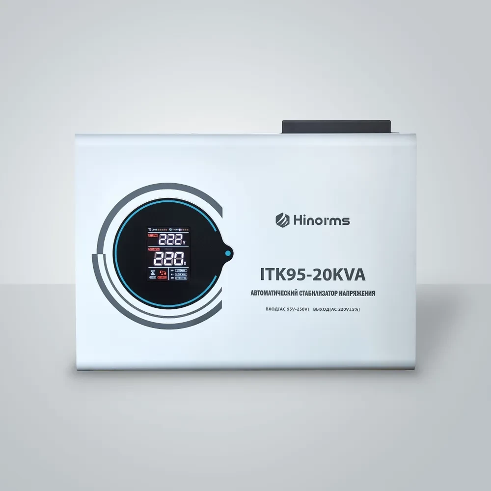 Тиристорные стабилизаторы напряжения Hinorms ITK95-20 кВА - это современное и надежное устройство для поддержания напряжения в сети с отклонением не более 5%, в широком диапазоне работы от 90 до 260 Вольт и подключаемой нагрузкой до 20000 ВА. Стабилизаторы корректирую напряжение абсолютно бесшумно, что позволяет их размещать в жилых помещениях и имеют универсальное настенно-напольное крепление, что также позволит грамотно разместить их без ущерба для полезного и свободно пространства внутри помещений. Отлично решение для защиты частных домовладений, магазинов или не большого предприятия Тип стабилизатора: тиристорный Тип сети: однофазная Полная мощность: 20000 ВА, 20 кВА (~16 кВт) Максимальный входной ток: 100 А КПД при полной нагрузке: 95 % Рабочий диапазон входных напряжений: 95 - 250 Вольт Предельный диапазон входных напряжений: 80 - 280 Вольт Номинальное выходное напряжение: 220 Вольт Отклонение выходных напряжений: ± 5 % Задержка включения: 200 или 5 сек Частота: 50 - 60 Гц Режим "БАЙПАС": есть Режим работы: непрерывный Тип охлаждения: конвекционное и принудительное Дисплей: LED-дисплей Индикация: входное напряжение / выходное напряжение / сеть / защита / задержка Время реакции на изменение напряжения: 30 мс Относительная влажность: 0 - 80 % (без конденсата) Температура эксплуатации: -20...+40 °С Способ установки: напольный или настенный Подключение: через клеммную колодку Размеры: 520х390х200 мм Вес: 38 кг Преимущества: Тиристорный силовой ключ. Надежность и молниеносная скорость реакции электронных ключей на отклонение напряжения. Отсутствие движущихся частей и ненадежных реле. Широкий диапазон входных напряжений. Работают даже в самых проблемных сетях. Стабилизируют напряжение при скачках до 280В и просадках до 80В. Высокая точность. Погрешность выходного напряжения всего 5%. Это точнее, чем требования ГОСТ. Подходит даже для самых требовательных и чувствительных приборов. Выдерживают высокие пусковые токи. Высокая перегрузочная способность до 200% для устройств с высокими пусковыми токами (насосы, компрессоры, станки и т.п) Чистая синусоида. Не вносят искажений, помех и гармоник высшего порядка, оставляя синусоиду напряжения идеально чистой. Отлично подходит для чувствительной техники. Высокая эффективность. Низкое собственное потребление и высокая энергоотдача. Меньше выделения тепла, меньше потери мощности. Полный спектр защитных систем. Защита от аномальных напряжений, перегрева, короткого замыкания и перегрузки. 100% защита как приборов, так и самого стабилизатора Подходят для любой нагрузки. Для бытового или промышленного применения. Одинаково хорошо работают с резистивной, индукционной, емкостной и смешанной нагрузкой Компания Hinorms, производитель стабилизаторов напряжения, с 2001 года поставляет продукцию в 80 стран. Продукция компании включает в себя множество типов устройств, таких как стабилизаторы напряжения, преобразователи и т. д. Стабилизаторы Hinorms по праву занимаю нишу в категории "цена - качество", создавая конкуренцию более именным на отечественном рынке товарам без потери качества.