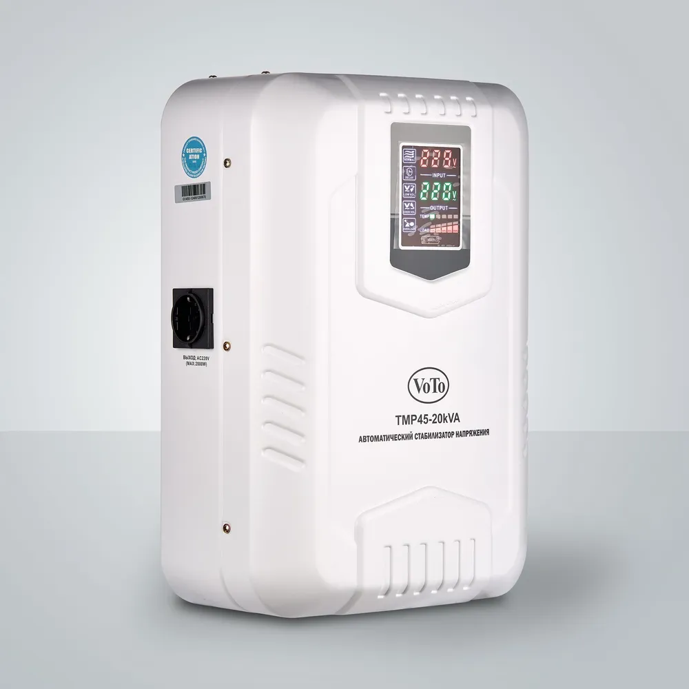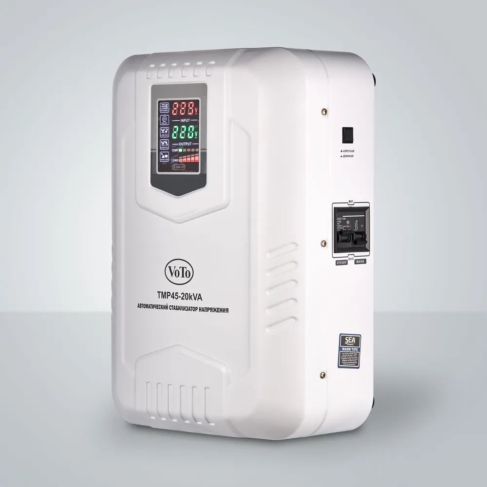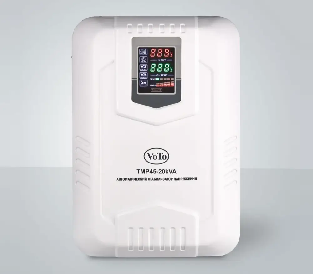 Автоматические стабилизаторы напряжения серии TMP представляют собой модели как для настольного, так и для настенного монтажа с лаконичным дизайном и информативным цифровым дисплеем. Тип напряжения: Однофазный Принцип стабилизации: Релейный Мощность: 20000 ВА Входное напряжение: 45-270 В Выходное напряжение: 220V ± 8% Частота: 50/60 Гц Трансформатор: тороидальный Тип дисплея: светодиодный цифровой дисплей (входное и выходное напряжение, избыточное и низкое напряжение, перегрузка, задержка, температура) КПД при полной нагрузке: 97% Задержка включения: короткий 3-5 сек, длинный 3-7 мин. Защита: от перенапряжения, перегрузки, высокой температуры, короткого замыкания Тип охлаждения: Воздушное (конвекционное и принудительное) Температура эксплуатации: -20...+55°С Относительная влажность: 90% Режим работы: Непрерывный Способ установки: Напольный, Настенный Цвет: Белый Отличаются высокой скоростью и широким диапазоном регулирования напряжения. Широко используются в различных отраслях промышленности и частного использования для защиты офисной и бытовой техники.