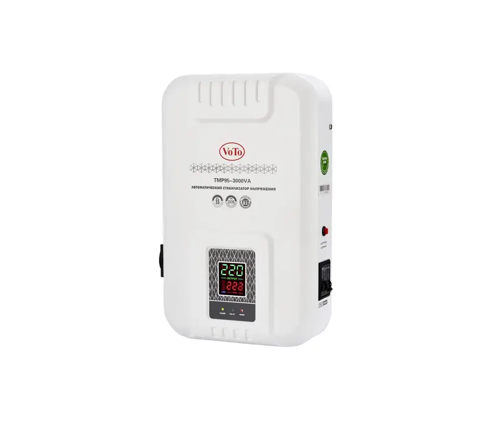 Автоматические стабилизаторы напряжения серии TMP представляют собой модели как для настольного, так и для настенного монтажа с лаконичным дизайном и информативным цифровым дисплеем. Тип напряжения: Однофазный Принцип стабилизации: Релейный Мощность: 3000 ВА Входное напряжение: 90 - 270 В Выходное напряжение: 220V ± 10% Частота: 50/60 Гц Трансформатор: тороидальный Тип дисплея: светодиодный цифровой дисплей (входное и выходное напряжение, избыточное и низкое напряжение, перегрузка, задержка, температура) КПД при полной нагрузке: 97% Задержка включения: короткий 3-5 сек, длинный 3-7 мин. Защита: от перенапряжения, перегрузки, высокой температуры, короткого замыкания Тип охлаждения: Воздушное (конвекционное и принудительное) Температура эксплуатации: -20...+55°С Относительная влажность: 90% Режим работы: Непрерывный Способ установки: Напольный, Настенный Цвет: Белый Отличаются высокой скоростью и широким диапазоном регулирования напряжения. Широко используются в различных отраслях промышленности и частного использования для защиты офисной и бытовой техники.