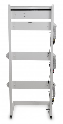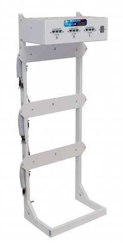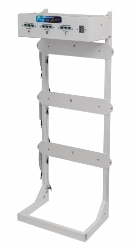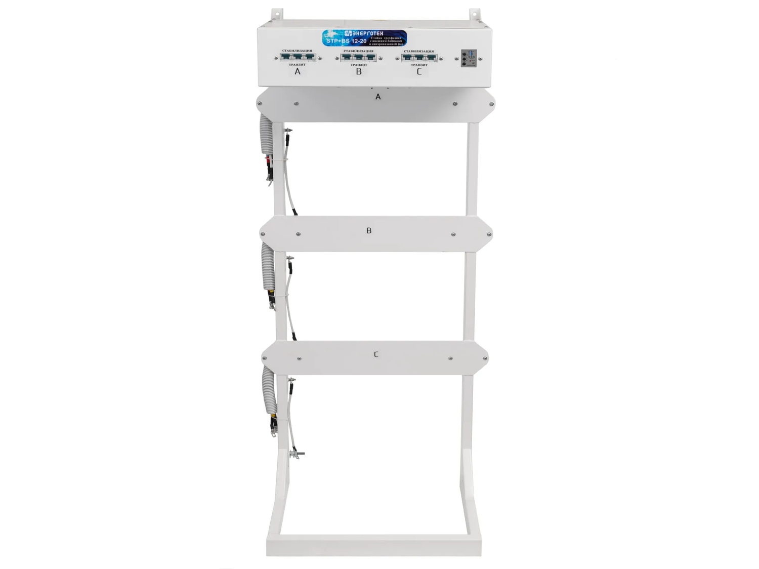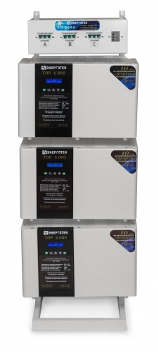 Стойка синхронизации и внешнего байпаса предназначена для объединения трех однофазных стабилизаторов напряжения TOP или PRIME для работы в трехфазном режиме. Масса не более 25 кг Габариты 350х600х1500 мм ( ГхШхВ ) Стойка предназначена для объединения трех однофазных стабилизаторов напряжения TOP или PRIME для работы в трехфазном режиме. Имеет устойчивое положение на горизонтальной поверхности. На стойке предусмотрены отверстия для крепления к вертикальной плоскости (стены либо окна), для обеспечения дополнительной устойчивости и надежной неподвижности конструкции. В верхней части Стойки расположен блок коммутации и синхронизации. Задняя крышка блока закрывает клеммные колодки, служащие для подсоединение подводящих и отходящих проводов. На передней панели блока расположены переключатели режимов работы каждого подключенного стабилизатора, «Стабилизация» «Транзит» и реле напряжения РНПП311М. Внутри блока расположен Контактор, который подает напряжение на трехфазный выход только при условии нахождения всех трех фаз в нормальном состоянии (определяется настройками реле). При работе всех трех стабилизаторов в режиме стабилизации реле контролирует только пропадание фаз. Нормальное функционирование стабилизатора будет происходить при нахождении верхнего переключателя реле в режиме «380», ЧФ в режиме «ВЫКЛ», ПФ, Umin и Umax в режиме «ВКЛ», Uном = 10%, Твкл и Тср в средних положениях. При переключении одного из блоков в режим «Транзит», реле может отключить выход при сильном отклонении напряжения на нестабилизированной фазе. Для более тонкой настройки порогов и задержек, рекомендуется обратится к руководству по эксплуатации реле РНПП311М (прилагается). Для однофазных нагрузок на стойке предусмотрены несинхронизированные выходы, которые не отключаются контактором. При необходимости осуществления обслуживания, ремонта или замены одного из стабилизаторов его следует выключить (автомат стабилизатора в положение «ВЫКЛ»), после чего перевести соответствующий переключатель в режим «ТРАНЗИТ». После этого контактор восстановит трехфазное питание, а стабилизатор может быть отключен от клемм Стойки. Предварительно нужно обязательно убедится в отсутствии высокого напряжения на отсоединяемых проводах. Стойка обеспечивает: удобный и компактный монтаж стабилизаторов ; быстрое подключение, возможность оперативной замены любого стабилизатора, либо отключение для осуществления ремонта в сервисном центре ; время обесточенного состояния нагрузки при использовании внешнего байпаса не более 1 минуты; защиту от пропадания, асимметрии и нарушения порядка чередования фаз для трехфазных нагрузок; бесперебойную работу однофазных нагрузок, при пропадании напряжения на соседней фазе; возможность, при необходимости, объединения стабилизаторов разной мощности и точности; задержку на отключение трехфазной нагрузки после пропадания напряжения на одной из фаз 3 секунды; задержку на включение трехфазной нагрузки после восстановления напряжения на всех трех фазах 5 секунд; защиту трехфазной нагрузки в режиме транзит от выхода напряжения за границы диапазона 180 260 В;