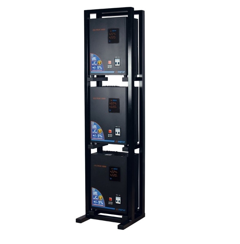Вертикальная коммутационная стойка, адаптированная для установки трех однофазных стабилизаторов Энергия Вольтрон мощностью 15 или 20 кВА. Количество полок (шт): 3 Габаритные размеры (мм): 1630х380х240 Вес (кг): 14,8 Представляет собой высокопрочную сварную конструкцию из металла весом 14,8 кг. Покрытие порошковой краской обеспечивает защиту от повреждений. Такая стойка позволяет быстро разместить три стабилизатора друг над другом.