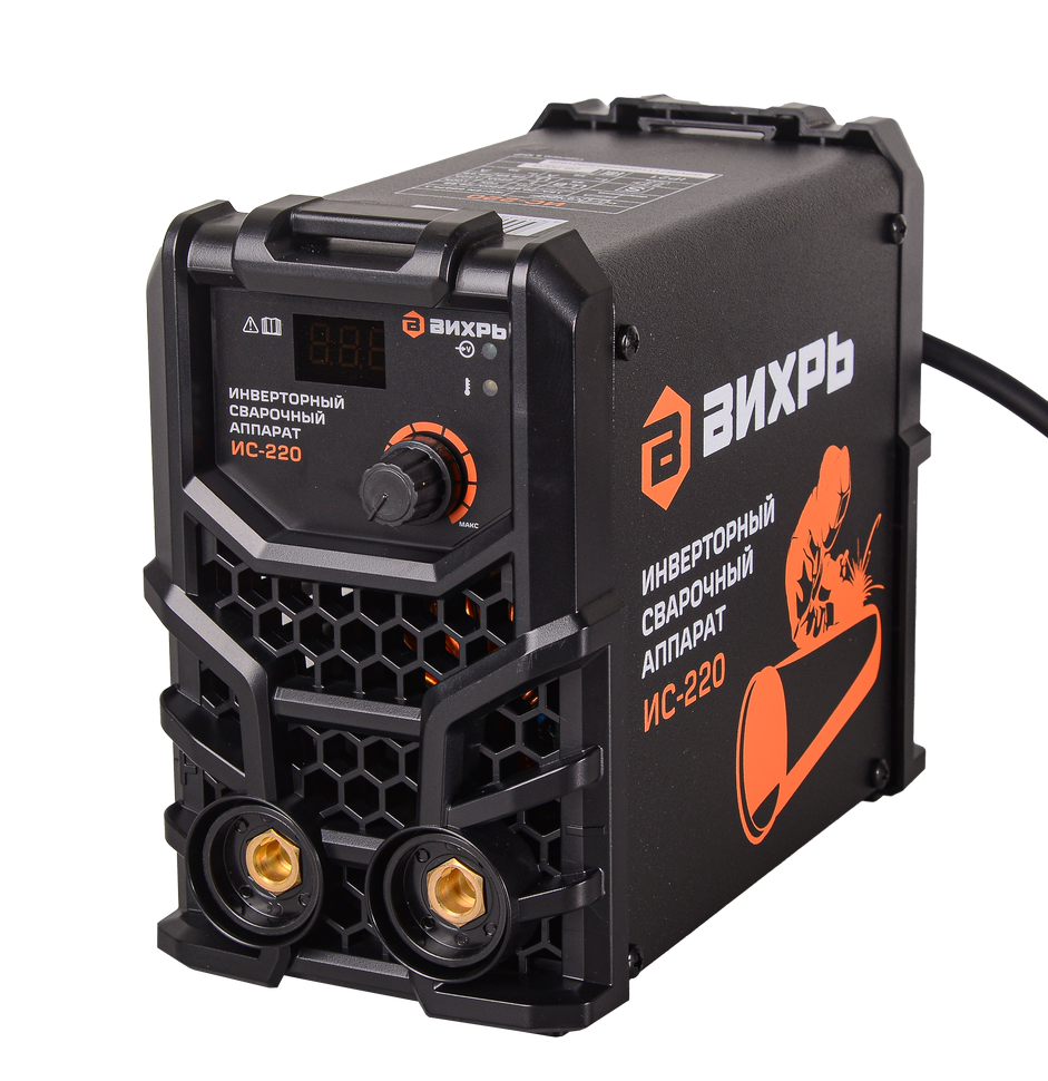 Сварочный аппарат инверторный Вихрь ИС-220 предназначен для ручной дуговой сварки штучным покрытым электродом на постоянном токе и электродом с рутиловым и основным покрытием (режим ММА). Характеристики Бренд: Вихрь Напряжение питающей сети, В: 140-250 Частота питающей сети ГЦ: 50 Потребляемый ток, А 36 Максимальный сварочный ток MMA, А :220 Диапазон регулирования сварочного тока MMA, А: 15-220 Рабочее напряжение ММА, В: 20,6-28,8 Напряжение холостого хода, В: 85 ПН (40°C) 70% 220A Потребляемая мощность ММА, кВА 8,3 Коэффициент мощности: 0,7 КПД: 80% Максимальный диаметр электрода MMA, мм 5 Класс защиты IP 21 Antistick: да Hot Start: да Регулируемый форсаж дуги: да Диапазон температуры эксплуатации, °С: -20...+50 Габариты упаковки: 0.23 х 0.23 х 0.23 м Вес: 3.275 кг Гарантия: 1 год
