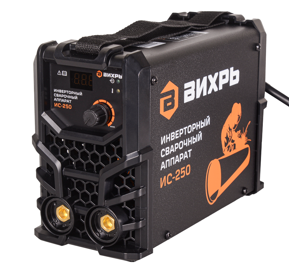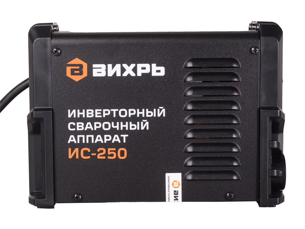 Сварочный аппарат инверторный Вихрь ИС-250 предназначен для ручной дуговой сварки штучным покрытым электродом на постоянном токе и электродом с рутиловым и основным покрытием (режим ММА). Характеристики Бренд: Вихрь Напряжение питающей сети, В:140-250 Частота питающей сети, ГЦ:50 Потребляемый ток, А:38,4 Максимальный сварочный ток MMA, А:250 Диапазон регулирования сварочного тока MMA, А:15-250 Рабочее напряжение ММА, В:20,6-30 Напряжение холостого хода, В:85 ПН (40°C):70% 250A Потребляемая мощность ММА, кВА:8,8 Коэффициент мощности:0,7 КПД:80% Максимальный диаметр электрода MMA, мм:5 Класс защиты:IP 21 Antistick:да Hot Start:да Регулируемый форсаж дуги:да Габариты упаковки:239х239х239 мм Диапазон температуры эксплуатации, °С:-20...+50 Вес, кг:3.825 кг