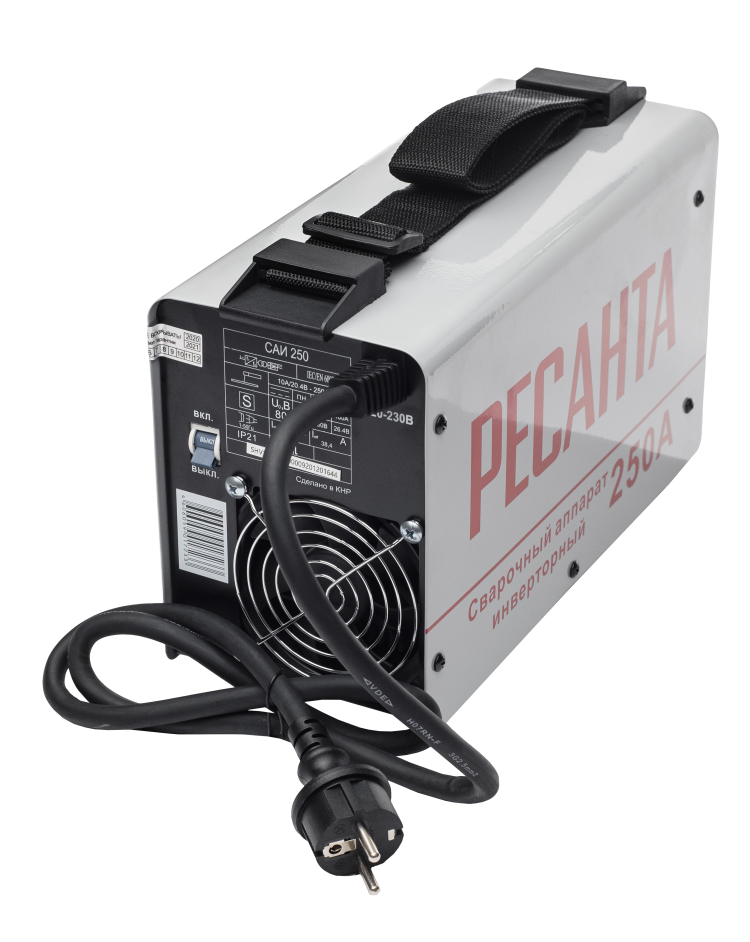 Сварочный аппарат инверторный «Ресанта» предназначен для ручной дуговой сварки штучным покрытым электродом на постоянном токе и электродом с рутиловым и основным покрытием (режим ММА). Аппарат работает от однофазной сети в диапазоне 140-260В с частотой 50Гц. Эффективный потребляемый ток, А: 38.4 Потребляемая мощность ММА, кВА: 9.5 Сварочный ток ММА, А: 250 Диапазон регулирования сварочного тока, А: 10 250 Входное рабочее напряжение, В: 140 260 Напряжение холостого хода, В: 85 Максимальный диаметр электрода, мм: 6 Функция Antistick: Да Функция HOT START: Да Напряжение дуги, В: 10.4 30 Класс защиты: IP21 Рабочий диапазон температуры окружающей среды, °C: -20...+50 Класс товара: Полупрофессиональный Наличие сетевой вилки: Да Кейс: Нет Мощность, Вт: 7700 Напряжение сети, В: 220 Продолжительность нагружения, %: 70% 250А Функция ArcForce: Да Коэффициент мощности: 0.7 Габариты, см: 31*13.3*18.4 Вес без упаковки, кг: 4.4 Вес: 7.28 кг Аппарат портативен и универсален в применении. Небольшие габариты и малый вес позволяют использовать аппарат для любых ремонтных работ, где требуется мобильность, небольшая мощность, хорошее качество и высокая производительность. Все сварочные инверторные аппараты "САИ" имеют защиту от перегрева, и оснащены функциями «ANTI STICK» (антизалипание), «HOT START» (горячий старт) и «ARC FORCE» (форсаж дуги). Комплект поставки: Сварочный аппарат 1 шт. Кабель с электрододержателем 1 шт. Кабель с клеммой заземления 1 шт. Паспорт (инструкция) 1 шт. Упаковка 1 шт.