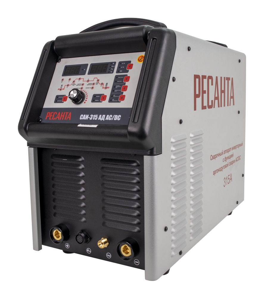 РЕСАНТА САИ-315 АД AC/DC современная инверторная аргонодуговая установка, позволяющая работать как на постоянном (сварка черных и нержавеющих сталей, меди, титана и пр.), так и на переменном токе (сплавы алюминия, магния, медные сплавы больших толщин и пр.), где требуется удаление окислов со свариваемой поверхности). Использование и развитие инверторной технологии в сварке существенно уменьшает массо-габаритные характеристики. Поэтому наши сварочные аппараты AC/DC легче и более эффективны по сравнению с традиционными. Основным принципом AC/DC установки является использование двойного инвертора и создание полуволн прямоугольной формы, которая делает сварочную дугу более стабильной, увеличивает тепловложение и очищающий эффект. Напряжение питающей сети, В: 380 ±10% Частота питающей сети, ГЦ: 50 Режим TIG: да Режим сварки MMA: да Потребл мощность TIG, кВт: 10.5 (TIG AC-DC) Потребляемая мощность ММА, кВт: 13.8 Сварочный ток TIG, A: 20-315 (TIG AC-DC) Сварочный ток MMA, A: 20-315 Рабочее напряжение TIG, B: 10.4 -22.6 Рабочее напряжение ММА, В: 20.8 - 32.6 ПН (40°C): 60% Сварочный ток TIG (ПН 100%), А: 245 Сварочный ток MMA (ПН 100%), А: 199 Напр холостого хода TIG, B: 66 Напряжение холостого хода, В: 66 Диаметр электрода TIG, мм: 1,0-4,0 Диаметр электрода MMA, мм: 1,5-5,0 Время продувки газом до сварки, с: 0.3 - 10 Время продувки газом после сварки, с: 0 - 20 Способ возбуждения дуги: Высокочастотный Коэффициент мощности: 0,75 КПД: 0,85 Класс изоляции: F Класс защиты: IP 21 Функция 2Т/4Т: да Функция памяти: 10 ячеек памяти Подключение системы жидкостного охлаждения: да Подключение педали управления сварочным током: да Регулировка времени нарастания тока, с: 0 - 10 Регулировка времени спада тока: 0 - 10 Цифровой дисплей: да Hot Start: да, регулируемый Форсаж дуги: да, регулируемый Импульсная сварка: да Защита от перегрева: да Регулировка баланса полярности: да Заварка кратера, с: да Регулировка рабочего цикла импульса, %: 10-90 Частота импульса, Гц: 0.1 - 200 Частота переменного тока, Гц: 50 - 100 Диапазон температуры эксплуатации, °С: -20...+50 Дополнительный способ сварки: Ручная дуговая сварка штучным покрытым электродом на постоянном токе электродами с рутиловым и основным покрытием (режим ММА). Для сварки электродом защитный газ не требуется.