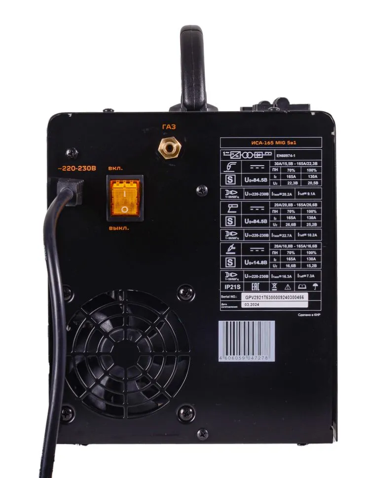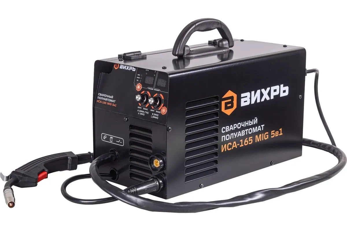 Сварочный аппарат инверторный полуавтоматический современный инверторный полуавтомат, изготовлен по передовой IGBT технологии. Потребляемая мощность ММА, кВт: 4.4 Напряжение холостого хода, В: 84.5 Диапазон регулирования сварочного тока, А: 30-165 Диапазон регулирования сварочного тока MMA, А: 20-165 Продолжительность нагружения, %: 70 Максимальный диаметр электрода MMA, мм: 4 Класс изоляции: F Класс защиты: IP21S Antistick: Есть Рабочий диапазон температур окружающей среды, С: -20 - +50 Hot Start: Есть Регулируемый форсаж дуги: Есть Габариты упаковки: 0.334 × 0.334 × 0.334 м Вес, кг: 8.06 кг Основные способы сварки: Полуавтоматическая сварка постоянным током, проволокой в среде защитного газа углеродистых и нержавеющих сталей (режим MIG/MAG). Сварка осуществляется постоянным током в среде инертных (MIG) или активных (MAG) защитных газах. Отличительной особенностью рассматриваемого вида сварки являются два главных компонента: подвижный плавящийся электрод(проволока) и защитный газ. Защита электрической дуги необходима с целью препятствования вступления расплавляемого металла в контакт с окружающей средой, поскольку данное взаимодействие (при окислении азота и кислорода) приводит к образованию оксидов и нитритов, наличие которых в металле приводит к дефектам сварного шва. С этой целью и применяются защитные газы в баллонах: аргон, гелий, углекислота или их смеси. Полуавтоматическая сварка порошковой проволокой без использования защитного газа (режим FCAW). Точечная полуавтоматическая сварка (SPOT). Сварка производится с одной стороны и имеет плоскую форму точки. SPOT сварка применяется при сварке закрытых профилей, стыковых и нахлесточных соединений. Дополнительные способы сварки: Ручная дуговая сварка штучным покрытым электродом на постоянном токе электродами с рутиловым и основным покрытием (режим ММА). Для сварки электродом защитный газ не требуется. Ручная дуговая сварка неплавящимся электродом в среде инертных газов и смесях (режим TIG) для металлов и сплавов (кроме алюминия) толщиной от 0,5 мм. Аппарат работает от однофазной сети 220-230В в диапазоне пониженного/повышенного напряжения 155-280В с частотой 50Гц. Аппарат портативен и универсален в применении. Небольшие габариты и малый вес позволяют использовать аппарат для небольших ремонтных работ, где требуется мобильность, небольшая мощность, хорошее качество и высокая производительность. *Для работы в режиме ММА сварки необходимо дополнительно приобрести электрододержатель, для TIG сварки специальную вентильную горелку.