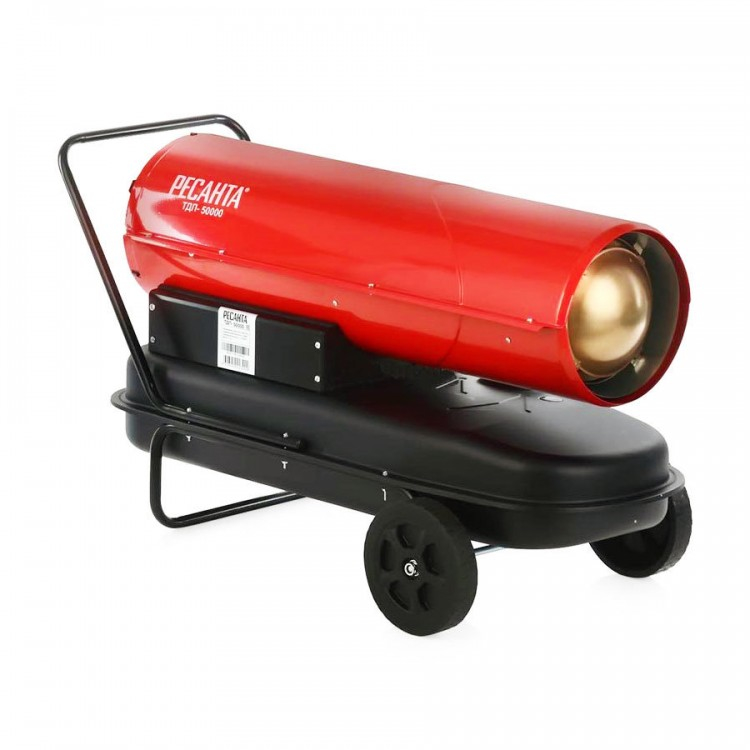 Дизельная тепловая пушка РЕСАНТА ТДП-50000 функциональный обогреватель с прямым нагревом для отопления складских, строительных и других помещений. Тепловые пушки с прямым нагревом прогоняют воздушную массу непосредственно через горящее пламя, отдающее ей тепло, тем самым подавая в отапливаемую зону со всеми отходами, выделяемыми при горении дизельного топлива (солярки). Иными словами, дым, сажа и прочее попадают непосредственно в отапливаемую зону. Преимущества: 1. Такие обогреватели могут работать как на солярке, так и на отработанном масле или керосине, что еще больше увеличивает экономичность оборудования. 2. Мобильность. Дизельные пушки весят они немного: основную массу составляет бак с топливом, который может быть разного размера. Это дает возможность перевозить и устанавливать эти обогреватели в самых разных местах. 3. Мощность. Эффективность нагрева очень высокая. Можно подобрать соответствующую модель из очень большого модельного ряда, которая обеспечит максимальную эффективность при минимальных размерах устройства и затратах на его обслуживание. Особенно актуальным этот момент становится, когда необходимо быстро и достаточно сильно прогреть помещение, в котором ведутся ремонтные работы. В частности установка натяжных потолков. Пушка прогреет воздух до нужной температуры, за считанные минуты. Высокая мобильность такого отопителя, позволит без труда занести его в комнату, а после убрать. И для этого не понадобится привлекать дополнительный персонал все можно сделать силами тех мастеров, которые занимаются непосредственно монтажом покрытия. 4. Безопасность. Газовые пушки по этому параметру будут далеко не лидерами, а электрические обогревательные приборы требуют наличия электроснабжения. Так что, сложив все плюсы этих устройств, получим один из наиболее удобных и экономичных способов обогреть большую площадь. 5. Надежность. Обогреватели, использующие для нагрева солярку, практически не ломаются, а осуществить ремонт дизельных тепловых пушек значительно проще, чем, например, газового оборудования. Защита от угасания пламени и от воспламенения. Производительность, м3/ч 1500 Тип управления Механический Вес без упаковки, кг 20.95 Частота, Гц 50 Питание От электросети Объем топливного бака, л 38 Наличие сетевой вилки Да Напряжение сети, В 220 Гарантия, мес. 12 Вес 30 кг Габариты, см 88 х 46,5 х 59,0 Номинальная тепловая мощность на 1 уровне мощности, кВт 50 Тип топлива дизельное / керосин Расход топлива, кг/ч 3.96