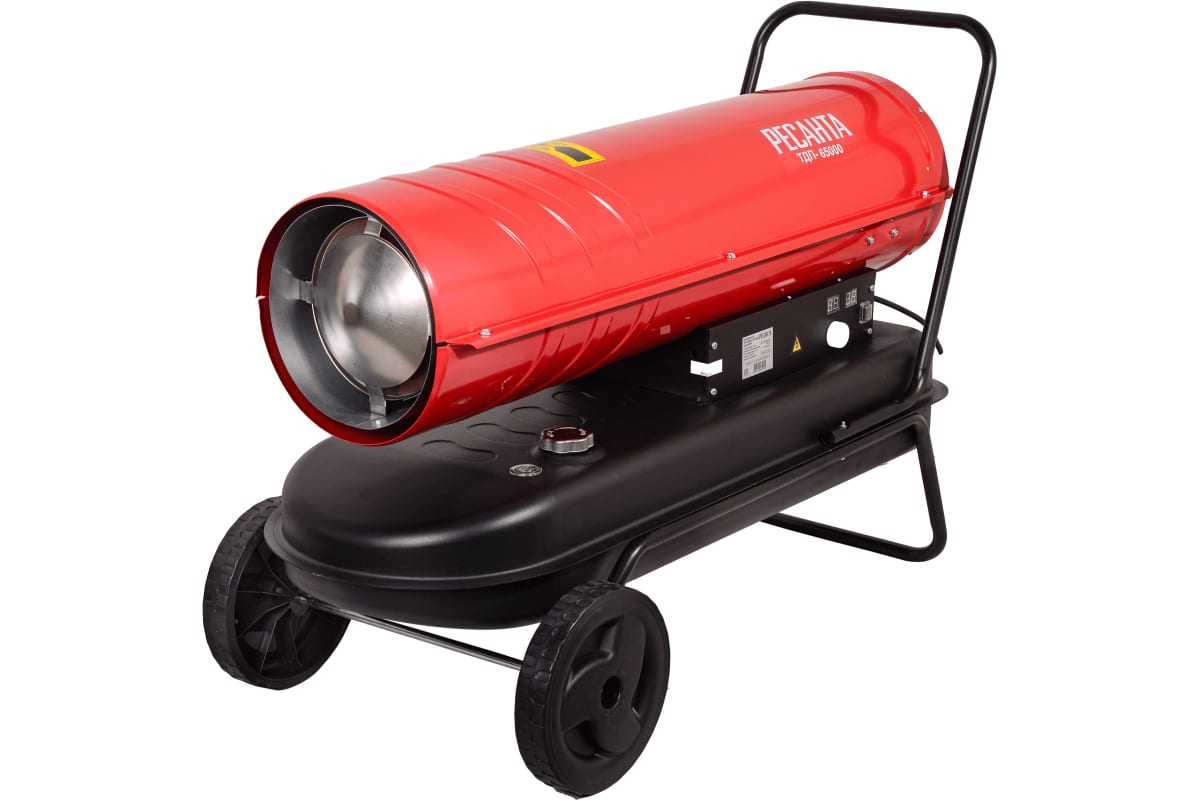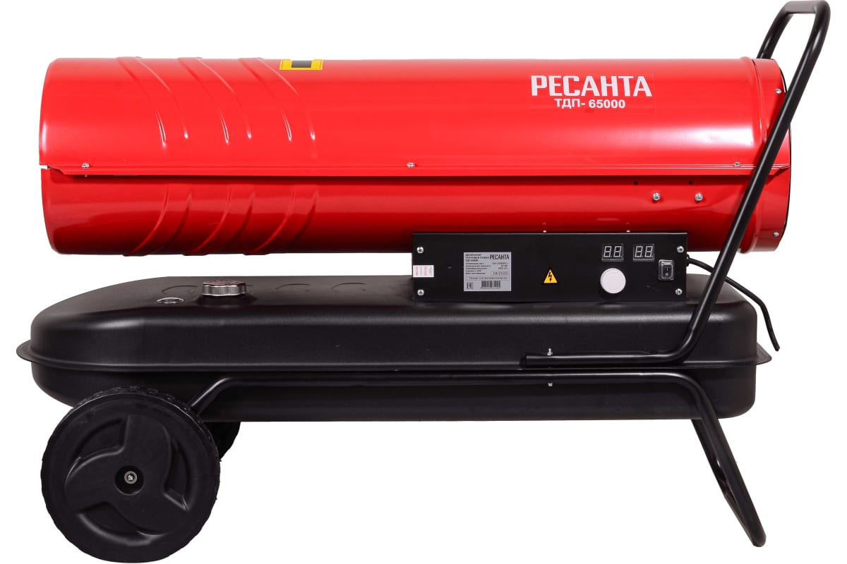 Дизельная тепловая пушка РЕСАНТА ТДП-65000 Функциональный обогреватель с прямым нагревом для отопления складских, строительных и других помещений. Тепловые пушки с прямым нагревом прогоняют воздушную массу непосредственно через горящее пламя, отдающее ей тепло, тем самым подавая в отапливаемую зону со всеми отходами, выделяемыми при горении дизельного топлива (солярки). Иными словами, дым, сажа и прочее попадают непосредственно в отапливаемую зону. Производительность, м3/ч 2000 Тип управления Механический Вес без упаковки, кг 25.1 Частота, Гц 50 Питание От электросети Объем топливного бака, л 56 Материал Металл Наличие сетевой вилки Да Напряжение сети, В 220 Гарантия, мес. 12 Класс защиты IP20 Номинальная тепловая мощность на 1 уровне мощности, кВт 65 Тип топлива дизельное / керосин Объем обслуживаемого помещения, мᵌ 650 Уровень шума, дБ 65 Повышенная теплоизоляция корпуса есть Защита от перегрева есть Ручка - держатель есть Регулировка температуры есть Световая индикация включения есть Индикация уровня топлива есть Расход топлива, кг/ч 4.74 Преимущества: 1. Такие обогреватели могут работать как на солярке, так и на отработанном масле или керосине, что еще больше увеличивает экономичность оборудования. 2. Мобильность. Дизельные пушки весят они немного: основную массу составляет бак с топливом, который может быть разного размера. Это дает возможность перевозить и устанавливать эти обогреватели в самых разных местах. 3. Мощность. Эффективность нагрева очень высокая. Можно подобрать соответствующую модель из очень большого модельного ряда, которая обеспечит максимальную эффективность при минимальных размерах устройства и затратах на его обслуживание. Особенно актуальным этот момент становится, когда необходимо быстро и достаточно сильно прогреть помещение, в котором ведутся ремонтные работы. В частности установка натяжных потолков. Пушка прогреет воздух до нужной температуры, за считанные минуты. Высокая мобильность такого отопителя, позволит без труда занести его в комнату, а после убрать. И для этого не понадобится привлекать дополнительный персонал все можно сделать силами тех мастеров, которые занимаются непосредственно монтажом покрытия. 4. Безопасность. Газовые пушки по этому параметру будут далеко не лидерами, а электрические обогревательные приборы требуют наличия электроснабжения. Так что, сложив все плюсы этих устройств, получим один из наиболее удобных и экономичных способов обогреть большую площадь. 5. Надежность. Обогреватели, использующие для нагрева солярку, практически не ломаются, а осуществить ремонт дизельных тепловых пушек значительно проще, чем, например, газового оборудования. Защита от угасания пламени и от воспламенения.