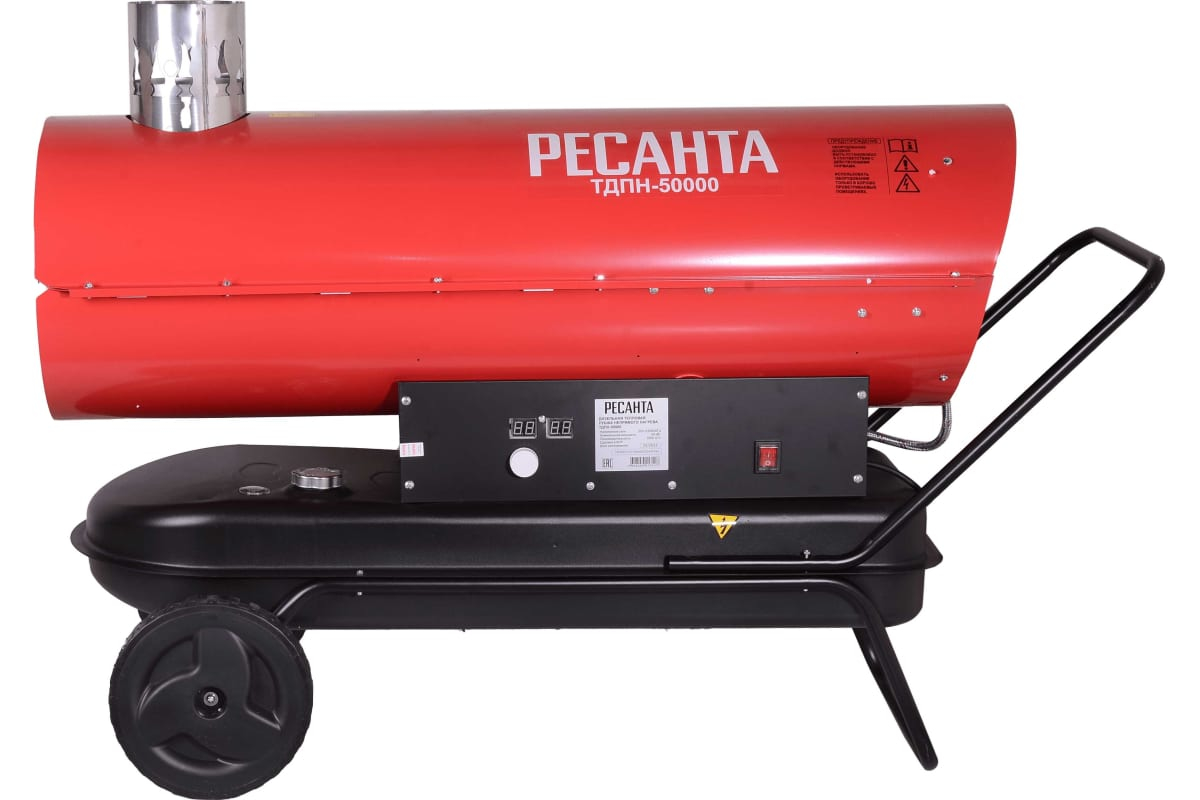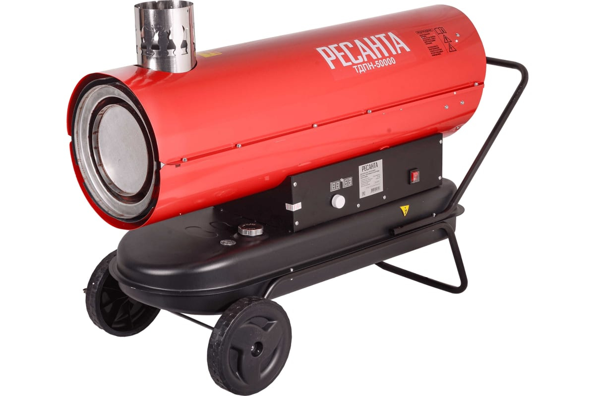 Дизельная тепловая пушка РЕСАНТА ТДПН-50000 - Функциональный обогреватель с непрямым нагревом для отопления складских, строительных и других помещений. При использовании непрямого нагрева воздух не смешивается с продуктами горения солярки. Для передачи тепла предусмотрен специальный теплообменник, который нагревает воздух. Сам теплообменник накаляется сгоревшим топливом, а все продукты горения, пройдя через него, уходят в смонтированную дымовую трубу. Это позволяет использовать подобные устройства для монтажа потолочных покрытий натяжного плана. Производительность, м3/ч 2000 Вес без упаковки, кг 58.1 Частота, Гц 50 Питание От электросети Объем топливного бака, л 68 Напряжение сети, В 220 Гарантия, мес. 12 Страна бренда Латвия Страна производства Китай Бренд Ресанта Номинальная тепловая мощность на 1 уровне мощности, кВт 50 Автоотключение есть Защита от перегрева есть Ручка - держатель есть Регулировка температуры есть Световая индикация включения есть Индикация уровня топлива есть Расход топлива, кг/ч 3.96