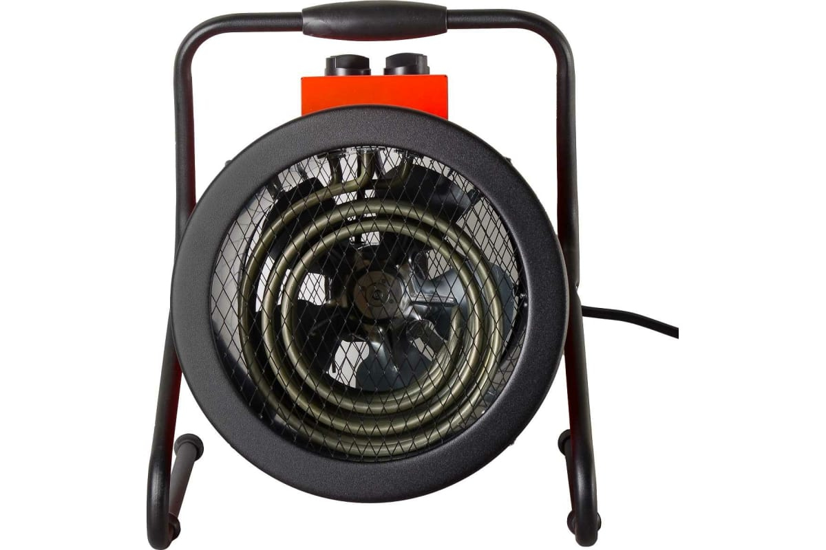 Тепловая электрическая пушка РЕСАНТА ТЭП-5000К предназначена для вентиляции и обогрева жилых и производственных помещений, складов, гаражей, а также для обогрева и сушки в строительстве. Прибор относится к тепловым пушкам круглого типа. Нагревательный элемент - трубчатый. Данная модель рассчитана на питание от электросети переменного тока частотой 50 Гц, номинальным напряжением 380В (трехфазная). Устанавливается на полу. Обогреватель оснащен регулировкой режимов работы (мощности): Режим 1: 30 Вт (в этом режиме работает только вентилятор. Функция обогрева отключена) Режим 2: 2500 Вт Режим 3: 5000 Вт Функциональные особенности: Терморегулятор предназначен для регулировки температуры; Резет данная кнопка предназначена для перезапуска термореле после перегрева (данная функция установлена в моделях начиная с 3000Вт и выше, кроме ТЭПК); Регулировка режимов работы данная регулировка предназначена для выбора режимов работы; Режим выключения данная функция предназначена для отключения режимов работы; Режим вентилятора данная функция предназначена для включения вентилятора, а также применяется на 10-15 секунд перед отключением устройства для охлаждения тэнов; Режим работы на 50% мощности данная функция позволяет включить вентиляцию с включением половины нагревательных элементов; Режим работы на 100% мощности данная функция позволяет включить вентиляцию с включением всех нагревательных элементов. Производительность, м3/ч 400 Количество режимов 3 Тип управления Механический Вес без упаковки, кг 7 Частота, Гц 50 Питание От электросети Регулятор температуры Да Материал Металл Мощность, Вт 5000 Напряжение сети, В 380 Гарантия, мес. 12 Страна бренда Латвия Страна производства Россия Вес 8.3 кг Бренд Ресанта Габариты, см 33,2 х 33,2 х 41,5 Регулировка мощности, вентиляция без нагрева, световой индикатор работы, термостат, защита от перегрева Важно: не накрывать и не ставить тепловую пушку на ковровые покрытия. Помещения должны быть сухими, с температурой от минус 10 до плюс 40°С.