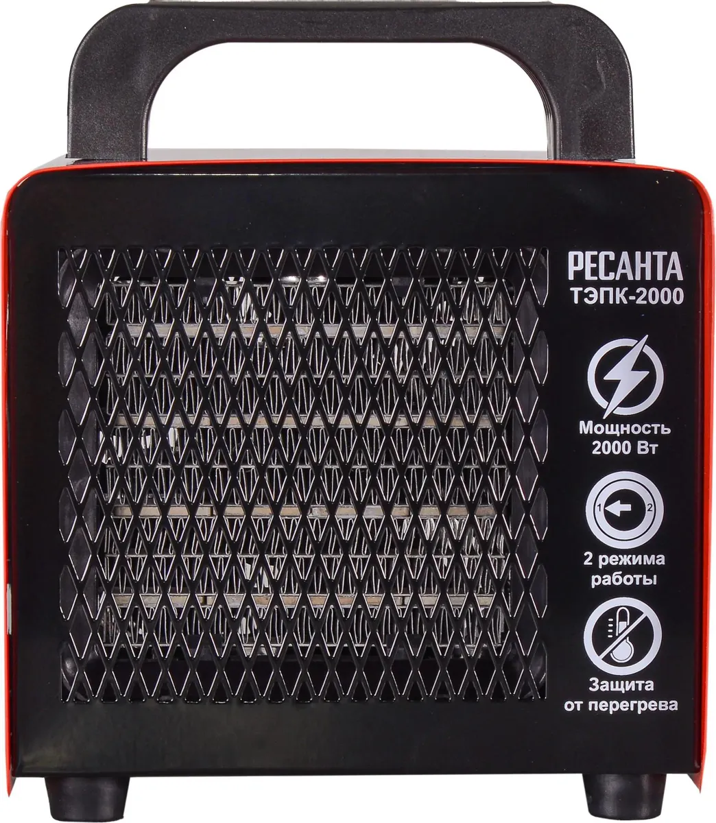 Тепловая электрическая пушка РЕСАНТА ТЭПК-2000 предназначена для вентиляции и обогрева жилых и производственных помещений, складов, гаражей, а также для обогрева и сушки в строительстве. Производительность, м3/ч: 120 Количество режимов: 2 Тип управления: Механический Вес без упаковки, кг: 1.9 Частота, Гц: 50 Питание: От электросети Регулятор температуры: Да Материал: Металл Наличие сетевой вилки: Да Мощность, Вт: 2000 Напряжение сети, В: 220 Возможности: Регулировка мощности, вентиляция без нагрева Гарантия, мес.: 12 Страна бренда: Латвия Страна производства: Россия Вес: 2.5 кг Бренд: Ресанта Габариты, см: 20,0 x 18,5 x 20,5 Прибор относится к тепловым пушкам квадратного типа. Нагревательный элемент - керамический. Данная модель рассчитана на питание от электросети переменного тока частотой 50 Гц, номинальным напряжением 220-230В (однофазная). Устанавливается на полу. Обогреватель оснащен регулировкой режимов работы (мощности): Режим 1: 1000 Вт Режим 2: 2000 Вт Функциональные особенности: Терморегулятор предназначен для регулировки температуры; Регулировка режимов работы данная регулировка предназначена для выбора режимов работы; Режим выключения данная функция предназначена для отключения режимов работы; Режим вентилятора данная функция предназначена для включения вентилятора, а также применяется на 10-15 секунд перед отключением устройства для охлаждения тэнов; Режим работы на 50% мощности данная функция позволяет включить вентиляцию с включением половины нагревательных элементов; Режим работы на 100% мощности данная функция позволяет включить вентиляцию с включением всех нагревательных элементов.