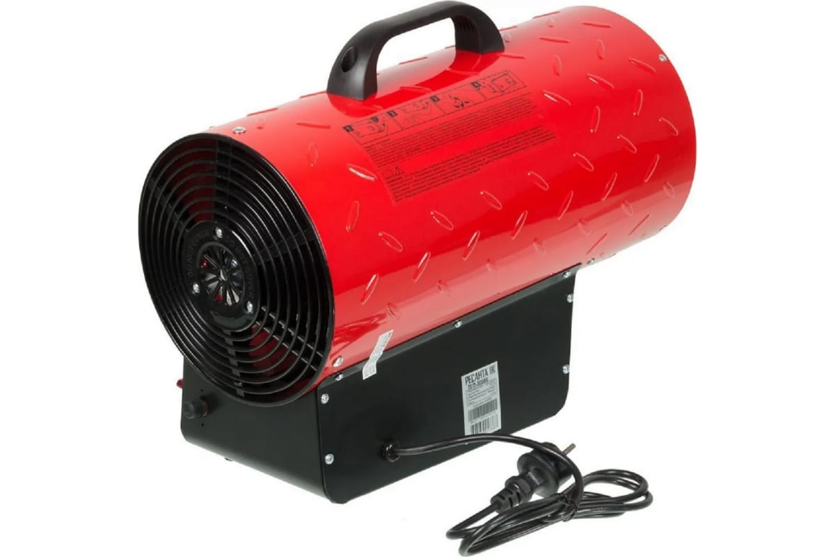 Газовая тепловая пушка РЕСАНТА ТГП-30000 воздухонагреватель, работающий на сжиженном газовом топливе. Топливо необходимо для получения горячей атмосферы в камере сгорания, а электроэнергия, подводимая к устройству, необходима для питания вентилятора, нагнетающего воздух, и для функционирования автоматики. Газовые пушки прямого нагрева являются простой и надёжной конструкцией без дымохода, где горячий воздух из устройства поступают в помещение. Расход топлива, л/ч 2.4 Производительность, м3/ч 1000 Тип управления Механический Вес без упаковки, кг 7.5 Частота, Гц 50 Питание От электросети Материал Металл Давление, бар 0.7 Мощность, Вт 30000 Напряжение сети, В 220 Возможности Пьезорозжиг, горелка в комплекте, защита от перегрева, температурный датчик на клапане газа Гарантия, мес. 12 Страна бренда Латвия Страна производства Китай Вес 8.3 кг Бренд Ресанта Габариты, см 59 х 23,5 х 38 Преимущества газовых пушек Ресанта: - экономия электроэнергии и более высокую эффективность в теплоотдаче, так как генерация тепла происходит от открытого пламени. - значительная мобильность, так как нет необходимости подключать газовую пушку к электросети большой мощности, достаточно подключить к генератору Huter HT950A, а это уже полная автономия. - можно использовать как вентилятор. Самая распространённая сфера применения тепловых пушек: монтаж натяжных потолков. Также часто используют в помещениях без центрального отопления: ремонтные цехи, склады, частные гаражи. Комплектация: Газовая тепловая пушка - 1 шт. Руководство по эксплуатации - 1 шт. Газовый шланг - 1 шт. Редуктор - 1 шт. Упаковка - 1 ш Важно: Газовую тепловую пушку запрещено использовать в непроветриваемых помещениях.