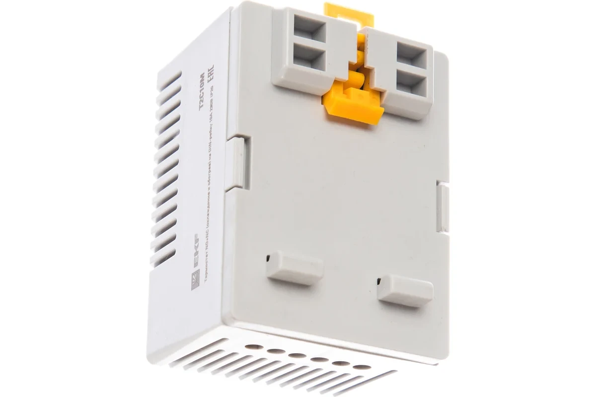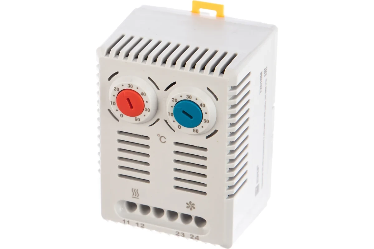 Термостат EKF PROxima NO+NC (охлаждение и обогрев) на DIN-рейку 10A, 230В предназначен для поддержания фиксированной температуры внутри электрощитов. Предназначен для управления исполнительными устройствами: калориферами и вентиляторами. А так же, для оповещения о превышении предельной температуры. Нормально-замкнутый контакт (NC) используется для регулирования нагревателей. Нормально-разомкнутый контакт (NO) для регулирования вентиляторов, или для включения сигнальных датчиков при превышении температуры. Технические характеристики: Способ монтажа: на Din-рейку Режим работы: нагрев или охлаждение Номинальное напряжение: 220(230) В Номинальный ток: 10 А Контактная группа: 1NO/1NC Степень защиты: IP20 Вес нетто: 0.09 кг Габариты без упаковки: 67х50х46 мм Диапазон регулируемых температур: 5...60 °С Модельный ряд: PROxima Дополнительные характеристики: Тип термостата - механический. Чувствительный элемент - биметаллическая пластина. Срабатывание при отклонении от установленной °t - 7°С (± 4 °С погрешность). Подключение - винтовой зажим до 2.5мм2. Климатическое исполнение - УХЛ3.
