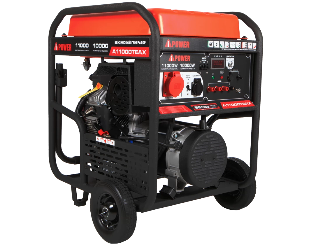 Большой бензиновый генератор трехфазный мощностью 10 кВт подходит для использования в домах при постоянном проживании, а также при осуществлении строительных и других видов работ. Модель выдерживает высокие пусковые токи до 25 кВА. ХАРАКТЕРИСТИКИ Сертификат СЕ: есть Вес изделия, кг: 170 Вес в упаковке, кг: 190 Габаритные размеры упаковки, мм: 785*655*925 Габаритные размеры изделия (ДхШхВ), мм: 730*770*915 Комплектация: Генератор/Инструкция/Свечной ключ/Воронка/Вилки электрические 2 шт/Транспортировочный комплект Уровень шума на 7 м, дБ: 84 Звуковое давление (дБ)А: 97 Класс изоляции: F Стартер: Ручной/Электро/ATS Генератор Тип контроля напряжения: AVR Максимальная мощность, кВт: 11,0 Номинальная мощность, кВт: 10,0 Пусковая мощность, кВА: 25 Сила тока, А: 14,43 Количество полюсов: 2 Коэффициент мощности (cos): 0,8 Класс защиты: IP23 Напряжение, В: 400 Частота, Гц: 50 Переключатель ЗИМА/ЛЕТО для АВР: Нет Количество фаз: 3 Высокие пусковые токи: Да Двигатель Серия: GB680 Тип: 4-тактный, OHV Производитель двигателя: A-iPower Скорость вращения (макс./ном), об/мин: 3600/3000 Тип регулятора оборотов: Центробежный регулятор Мощность, кВт/л.с. при 3600 об/мин: 13.5кВт/18.5 л.с. Мощность, кВт/л.с. при 3000 об/мин: 12.5кВт/17 л.с. Свеча зажигания: Bosch F7TC Тип топлива / класс: Бензин АИ-92 Наличие топливного фильтра: Да Материал топливного бака: Металл Тип масла, SAE: SAE 10W-40 Объем масляного картера, л: 1,6 Количество цилиндров: 2 Тип охлаждения: Воздушное Наличие топливного крана: есть Расход топлива при загрузке 75%, л / час: 5,1 Расход топлива при 100% нагрузке, л / час: 5,8 Оснащение Ручка для транспортировки: В комплекте Цифровой дисплей: Есть Выход USB: Есть Разъем для подключения автоматики: Есть Надежный альтернатор фирмы Senci обеспечивает бесперебойную работу генератора, а соответственно всех приборов, в том числе и промышленных. Его мощный 4-тактный двигатель объемом 679 куб.см OHV, с сигналом и автоматом отключения при низком уровне масла, помогает поддерживать работу вашего генератора долгие годы. Большой бензиновый топливный бак объемом 45 литров обеспечивает среднее время работы 14 часов при нагрузке 25 %. Усиленная рама с высокопрочной порошковой покраской сохранит его на долго в хорошем состоянии, даже при агрессивном использовании. На генераторе есть выход для подключения АВР, Одна стандартная розетка 230В и Силовая розетка 230-400 В. На каждую розетку есть автомат защиты и клеммы для снятия полной мощности. Генератор оснащен электростартером, позволяющим быстро и легко запускать генератор, когда вам это нужно. Генератор A-iPower идеально подходит для питания всех ваших основных бытовых приборов и техники для ремонта.