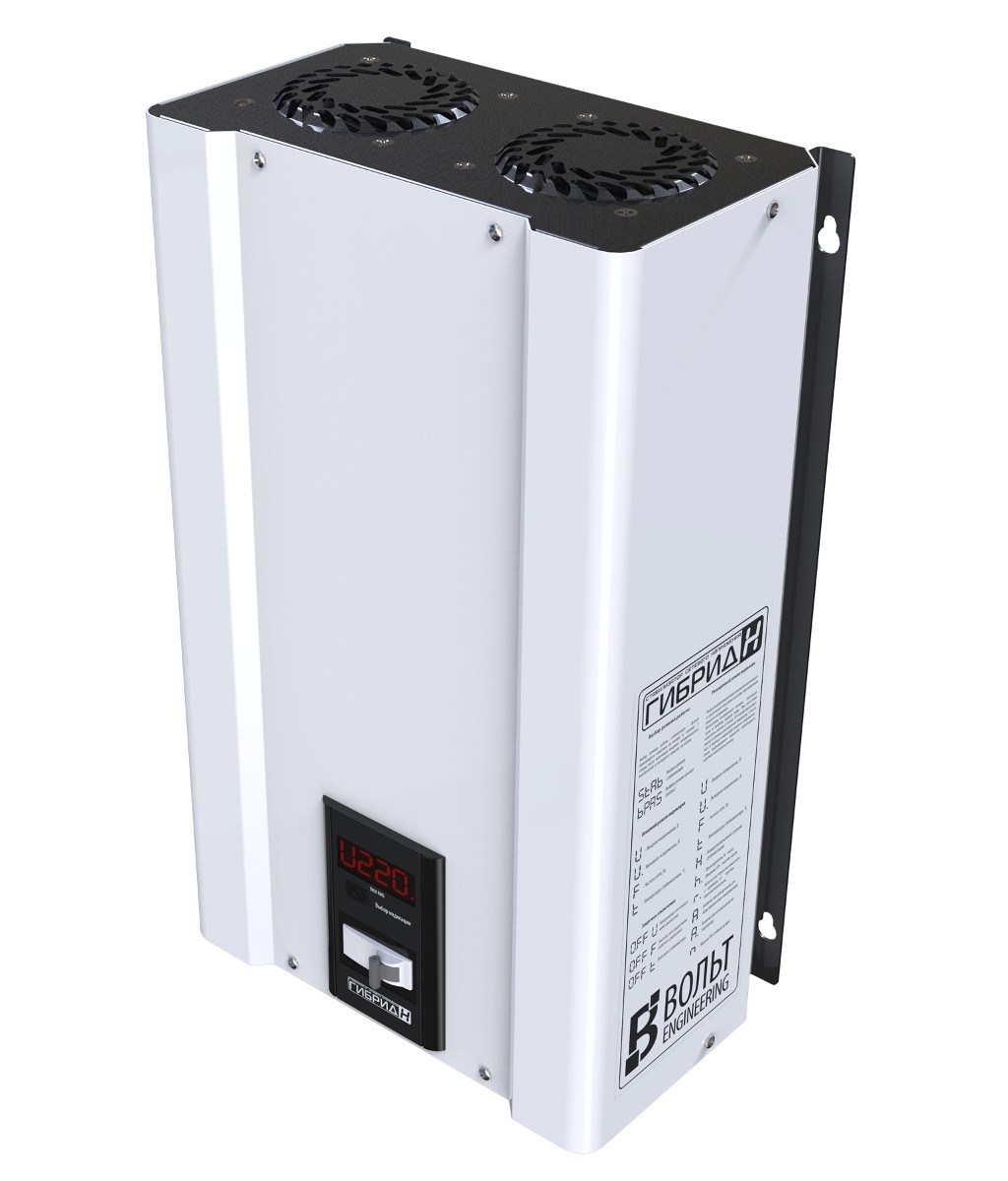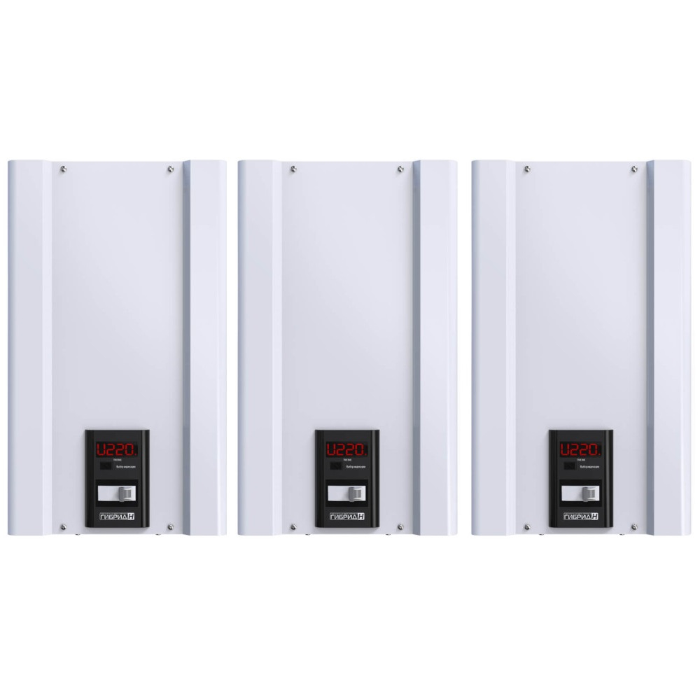 Трехфазный стабилизатор напряжения Вольт Engineering ГИБРИД Э 7-3/32А конструктивно состоит из трёх однофазных моделей Гибрид 7-1/32, который предназначен для использования в трехфазной сети общей мощности до 22кВт. Отличное решение для питания частного домовладения или дачи с разрешенной мощностью в 15 кВт (вводным автоматом на 25 Ампер), особенно если в доме вся техника однофазная (на 220 вольт), то целесообразнее установить на каждую фазу по однофазному стабилизатору на 7 кВт, чем ставить на 3 фазы трёхфазный моноблок на 20 кВт. Технические характеристики Гибрид 7-1/32: Номинальный ток, А: 32 Номинальная мощность, кВА/кВт: 7 Количество ступеней стабилизации: 7 Тип ключа: Симистор, дублированный электромагнитным реле КПД стабилизатора, не ниже, %: 98 Потребляемая активная мощность на холостом ходу, не более, Вт: 35 Номинальное выходное напряжение, В: 220 Диапазон стабилизации в рамках заявленной точности поддержания выходного напряжения, В: 135-275 Диапазон работы, В: 120-295 Точность поддержания выходного напряжения в диапазоне стабилизации, %: 7,5 Время реакции на изменение входного напряжения, мс: 100 Частота питающей сети, Гц: 45-65 Измерение входного тока и полной мощности: нет Ограничение токов КЗ и перегрузки: Входной автоматический выключатель с В-характеристикой электромагнитной защиты Индикация: 1 LED-индикатор Электронный Байпас: нет Микроконтроллерное управление: есть Принудительное охлаждение: вентилятор Дублирующая защита от перенапряжений: есть Входной дроссель: нет Выходной дроссель: нет Защита от перегрева: есть Минимальное сечение жил кабеля для подключения, мм2: 6 Максимальное сечение жил кабеля для подключения, мм2: 30 Вид климатического исполнения: УХЛ категория 4.2 Гарантия, лет/коммутаций: 2/200000 Наличие расширенной цифровой индикации при включенном режиме стабилизации на панели управления стабилизатора: входного и выходного напряжения, В; частоты сети, Гц; температуры стабилизатора; количества отключений по напряжению; количества отключений по температуре; версии ПО платы управления; номер включенной ступени стабилизации; время работы; количество переключений.