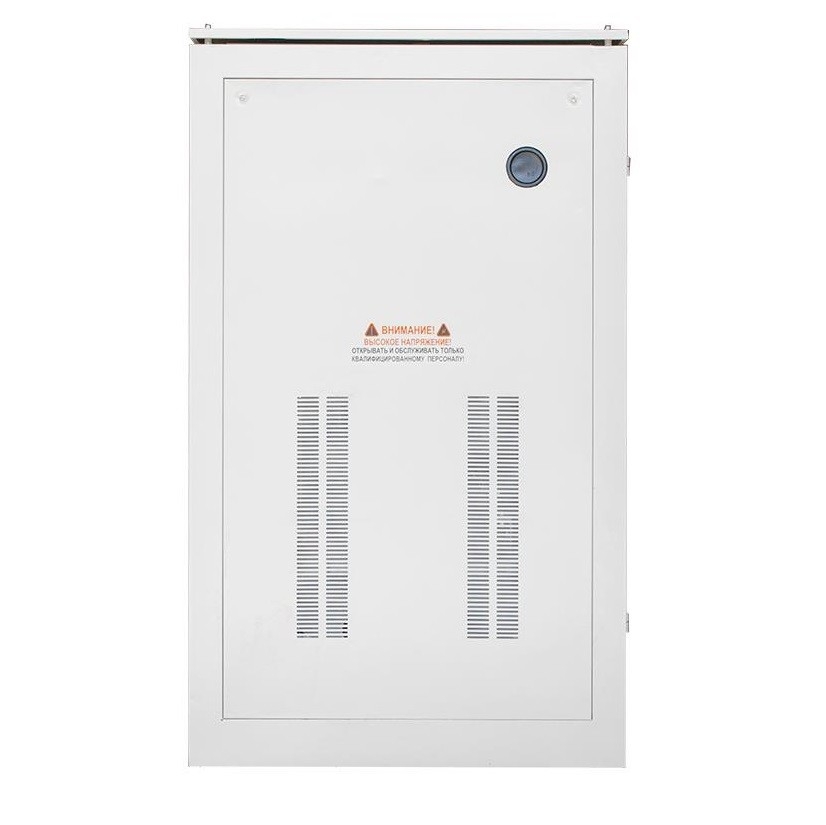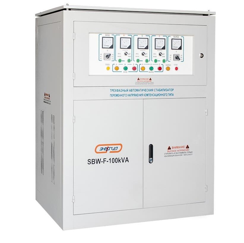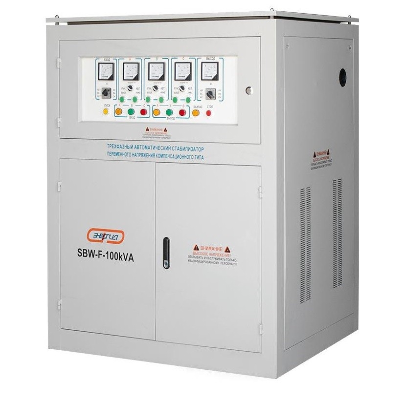 Тип напряжения: Трехфазный Принцип стабилизации: Сервоприводный Мощность (кВА): 100 Максимальный ток (А): до 151,5 (фазный) Режим работы: Непрерывный Способ установки: Напольный Тип охлаждения: Воздушное (конвекционное и принудительное) Дисплей: Стрелочный Индикация: Входное напряжение, Выходное напряжение, Сеть, Входной ток Подключение: Клеммная колодка Режим "БАЙПАС": Есть Задержка включения: 5 секунд Рабочий диапазон входных напряжений (В): 176-264 (фазные), 305-457 (линейные) Номинальное выходное напряжение (В): 220/380 Отклонение выходных напряжений: ±3% Кратковременная перегрузка в течение 10 минут (%): 10 Защита от повышенного напряжения, откл. при: 275В Защита от пониженного напряжения, откл. при: 150В Защита от перегрузки по току: Автоматический выключатель Контроль обрыва фаз: Есть Контроль перекоса фаз: Есть Контроль чередования фаз: Есть Степень защиты от внешних воздействий по ГОСТ 14254-96: IP20 Температура эксплуатации (°С): -10...+40 Относительная влажность (%): 90 КПД при полной нагрузке (%): 98 Гарантия: 12 месяцев Расчетный срок службы: 10 лет Применение: Для промышленных нужд Габаритные размеры (мм): 1150х900х1570 Вес (кг): 475