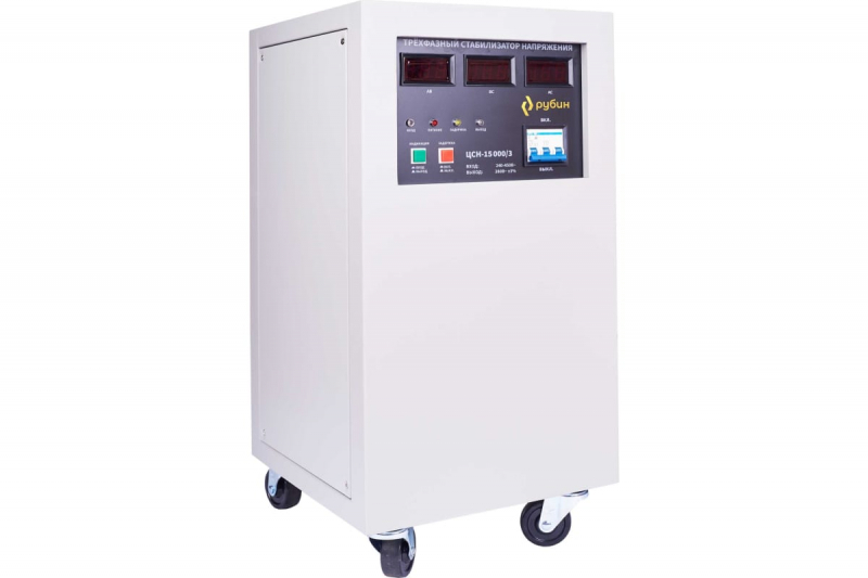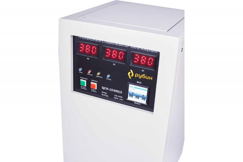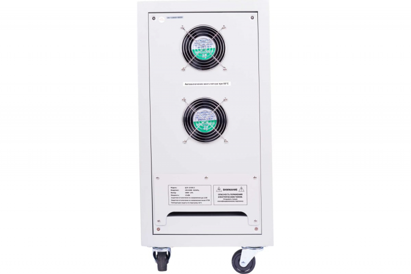 Широкий диапазон входного напряжения: от 260 В до 430 В. Это позволяет стабилизаторам адаптироваться к разным условиям питания и обеспечивать стабильное напряжение независимо от колебаний в сети. Тип стабилизатора: электромеханический Способ установки: напольный Мощность, ВА: 15000 Количество фаз: 3 Частота, Гц: 60 Напряжение входа (предельное): 430 Напряжение входа: 260 Напряжение выхода: 380 В ±3% Отклонение выходных напряжений: 3% Форма выходного сигнала: чистая синусоида Напряжение срабатывания защиты от повышенного напряжения, В: 470 Напряжение срабатывания защиты от пониженного напряжения, В: 190 Контроль обрыва фаз: Есть Охлаждение: туннельное Индикация: светодиодная Подключение: Клеммная колодка Трансформатор: тороидальный Защита от перегрева при t, °С: 65 Защита от перегрузки по току: есть Защита от пыли и влаги: IP 20 (негерметизирован) Диапазон рабочей температуры, °С: от -30 до +40 Габаритные размеры (д х ш х в), мм: 340x380x690 Вес НЕТТО, кг: 46.8 Вес БРУТТО, кг: 50 Применение технологии перекрестного переключения с нулевым значением и цифрового управления процессором, что обеспечивает точное и плавное регулирование напряжения. Система обратного отсчета с задержкой позволяет достичь высокой точности стабилизации и минимизировать влияние скачков напряжения на устройства. Встроенный детектор тока обеспечивает более точный контроль и управление электроэнергией, позволяя эффективно регулировать выходное напряжение и обеспечивать стабильное электропитание. Применение тороидального трансформатора, который обеспечивает высокую эффективность работы устройства и снижает потери энергии. Стабилизаторы являются энергоэффективными и экономичными в использовании. Полная защита питания - наши стабилизаторы оборудованы всеми необходимыми механизмами для защиты от высокого и низкого напряжения, перегрева, перегрузки, короткого замыкания и задержки на выходе (6 или 180 секунд). Это обеспечивает надежную защиту вашего оборудования от возможных повреждений. Преимущества Цветной светодиодный дисплей с полной информацией. Система охлаждения: туннельное охлаждение с автоматическим запуском при 65°C. Система поглощения электрической дуги. Разработано специально для российских сетей.