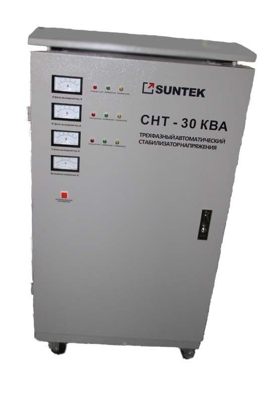 Стабилизатор трехфазный SUNTEK СНТ мощностью 30 кВА используется для защиты оборудования, установленного на промышленных объектах, в частных домах, дачах, от перепадов напряжения и короткого замыкания. Стабилизатор поддерживает широкий диапазон входного напряжения и отключается только при выходе за рамки фазного 120-285 Вольт. Технические характеристики:: Номинальная мощность, ВА: 30000 Максимальный ток, А: 135 Рабочий диапазон входных напряжений, В: 120 - 285 фазное и 240 - 450 линейное Ном. диапазон выходного напряжения, В: 215-225 фазное и 365 - 395 линейное Тип стабилизации: электромеханический ( сервопривод) Погрешность выходного напряжения,%: 2 на фазном и 4 на линейном Регулировка: плавная, автоматическая Искажение синусоиды: отсутствует Вариант подключения: клеммная колодка Рабочий диапазон t°С: -5 - +40 Охлаждение: пассивное Способ подключения в сеть: клеммная колодка Потребляемый ток, А: - Корпус: металл Защита от к/з: + Грозозащита: - Минимальная розничная цена, руб.: 60900 Габаритные размеры д-ш-в, см: 63х60х96 Вес, кг.: 100