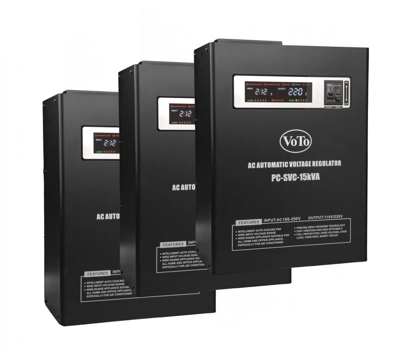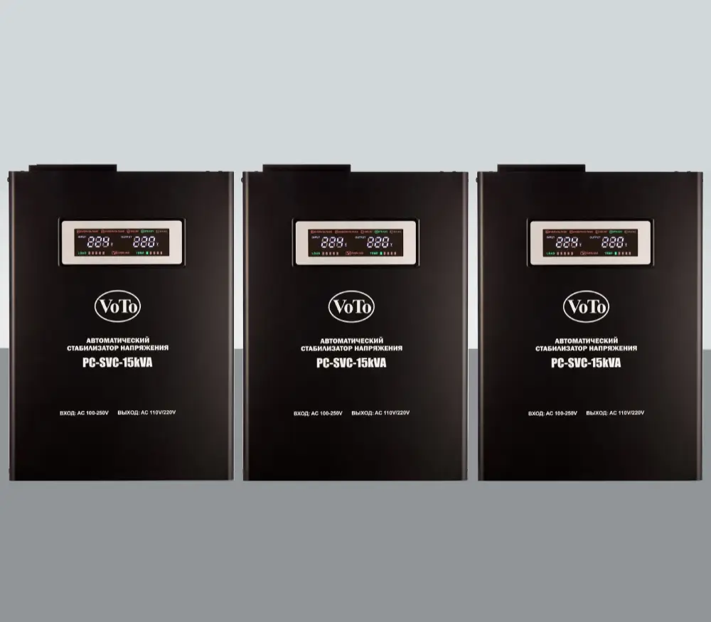 Комплект из трех однофазных стабилизаторов напряжения PC-SVC 100-15 электромеханического типа для работы в трехфазной сети. Уникальная особенность данного комплекта - это возможность работы с просадками в сети до 100 Вольт на каждой фазе, работа с суммарной нагрузкой до 45 кВА и возможность размещения на стене, что значительно позволяет экономить свободное пространство. Стабилизатор обладает хорошей точностью и плавностью коррекции выходного напряжения без отрыва от трансформатора, что очень важно при подключении требовательного оборудования к питающей сети или для комфортного использования в частном домовладении. Мощность: 45000 (15000 х 3) ВА Рабочий диапазон: 100-250 х 3 В Выходное напряжение: 308/220/110 ± 3% Количество фаз: Трехфазный (220 х 3) Рабочая частота: 50-60 Гц Влажность: не более 80% Защита от повышенной нагрузки: Присутствует Защита от повышенного напряжения: Присутствует Защита от пониженного напряжения: Присутствует Защита от короткого замыкания: Присутствует Термозащита трансформатора: Присутствует Тип размещения: Напольное + настенное крепление Габаритные размеры: 480х350х210 х 3 Вес: 135 (45 х 3) кг Стабилизатор PC-SVC 100 - 45/3 kVA (комплект PC-SVC 100-15 х 3) обладает информативным дисплеем, компактными размерами (для такого типа оборудования), отлично справляется с кратковременными перегрузками и имеет дополнительный вывод на клеммах в 100 Вольт для подключения импортного оборудования.
