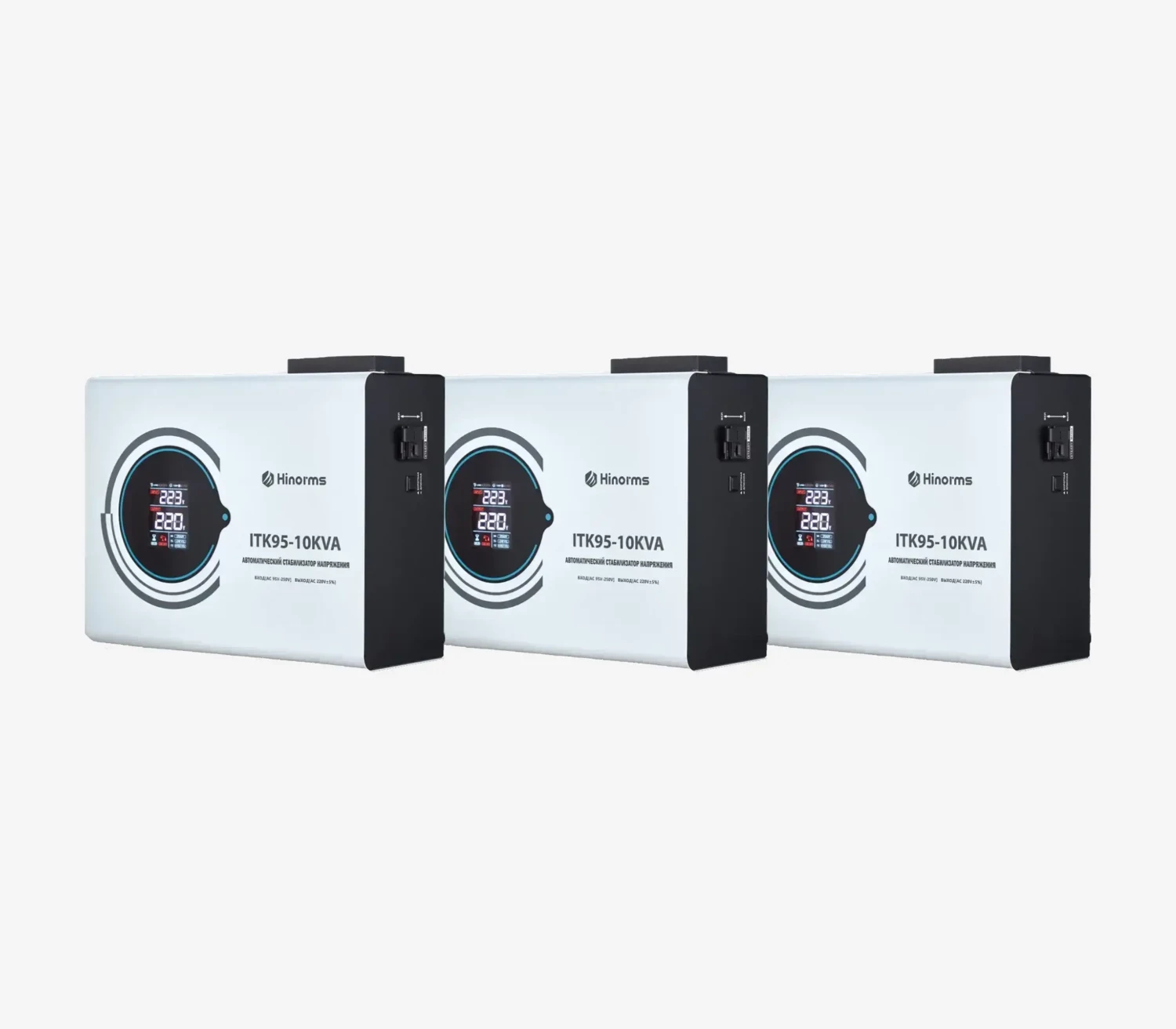 Трехфазный тиристорный стабилизатор Hinorms ITK95 - 30 кВА конструктивно состоит из трех однофазных стабилизаторов напряжения Hinorms ITK95-10 кВА и предназначен для подключения однофазных приборов в трехфазной сети, с общей нагрузкой до 30кВА. Hinorms ITK95 - это современное и надежное устройство с высоким ресурсом и комфортом эксплуатации. Предназначен для поддержания стабильного напряжения в сети (220 Вольт с отклонением не более 5%), в широком диапазоне работы (от 90 до 260 Вольт) и подключаемой нагрузкой до 30000 ВА (3 Х 10 кВА). Стабилизаторы корректирую напряжение абсолютно бесшумно, что позволяет их размещать в жилых помещениях и имеют универсальное настенно-напольное крепление, что также позволит грамотно разместить их без ущерба для полезного и свободно пространства внутри помещений. Отличное решение для установки на дачу, в квартиру или частное домовладение. Тип стабилизатора: тиристорный Тип сети: однофазная Полная мощность: 30000 ВА (3 х 10 кВА) Максимальный входной ток: 150 А (3 х 50 А) КПД при полной нагрузке: 95 % Рабочий диапазон входных напряжений по каждой из фаз: 95 - 250 Вольт Предельный диапазон входных напряжений по каждой из фаз: 80 - 280 Вольт Номинальное выходное напряжение по каждой из фаз: 220 Вольт Отклонение выходных напряжений: ± 5 % Задержка включения: 200 или 5 сек Частота: 50 - 60 Гц Режим "БАЙПАС": есть Режим работы: непрерывный Тип охлаждения: конвекционное и принудительное Дисплей: LED-дисплей Индикация: входное напряжение / выходное напряжение / сеть / защита / задержка Время реакции на изменение напряжения: 30 мс Относительная влажность: 0 - 80 % (без конденсата) Температура эксплуатации: -20...+40 °С Способ установки: напольный или настенный Подключение: через клеммную колодку Размеры: 3 х 440х370х190 мм Вес: 75 кг (3 х 25 кг) Компания Hinorms, производитель стабилизаторов напряжения, с 2001 года поставляет продукцию в 80 стран. Продукция компании включает в себя множество типов устройств, таких как стабилизаторы напряжения, преобразователи и т. д. Стабилизаторы Hinorms по праву занимаю нишу в категории "цена - качество", создавая конкуренцию более именным на отечественном рынке товарам без потери качества.
