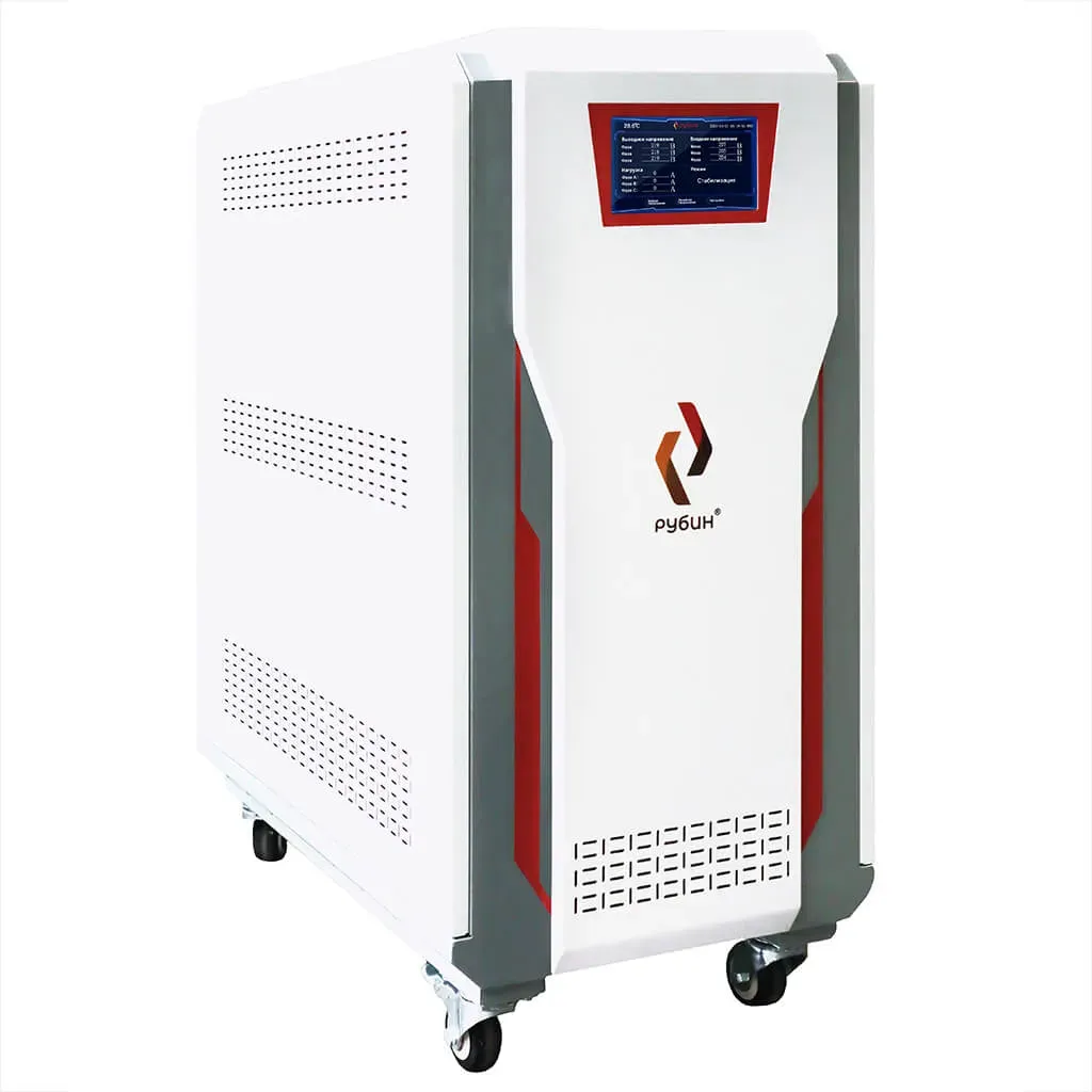 Стабилизатор напряжения Рубин ТСН предназначен для поддержания стабильного напряжения в трехфазных электросетях 380 Вольт в соответствии с ГОСТ 13109-97. Стабилизатор обеспечивает защиту от повышенного и пониженного напряжения, электрических помех, высоковольтных скачков и провалов входного напряжения. Стабилизатор оснащен комплексом систем, обеспечивающим надежную, защиту как потребителей. так и самого стабилизатора от любых нештатных ситуаций и рассчитан на непрерывную круглосуточную работу в условиях больших по значению и длительности отклонений напряжения от номинального значения. Тип стабилизатора: Тиристорный Мощность: 30 кВА (2130 кВт) Напряжение входа предельное (линейное), В: 270 - 310 Напряжение входа номинальное (линейное), В: 280 - 480 Напряжение входа предельное (фазное), В: 165 - 310 Напряжение входа номинальное (фазное), В: 170 - 300 Напряжение выхода (фазное), В: 220 ± 2% Напряжение выхода (линейное), В: 380 ± 2% Частота сети, Гц: 5060 Скорость реакции: 30 мс Технология «zero cross»: Есть Байпас: Есть (электронный) Подключение: Клемная колодка (L, N, PE) Перегрузочная способность: Перегрузка 20% до 30 мин Перегрузка 40% до 12 мин Перегрузка 60% до 7 мин Перегрузка 100% до 1.5 мин Перегрузка 200% менее 1 сек Тип нагрузки: Резистивная, емкостная, индукционная, смешанная Охлаждение: Конвекционное, принудительное Защита от повышенного напряжения: Электронная, при входном напряжении >247 В Защита от пониженного напряжения: Электронная, при входном напряжении <170 В Защита от перегрева: Электронная, при внутренней температуре > 120° С Защита от короткого замыкания: Электронная и автоматический выключатель Задержка включения: 5200 сек (настраивается) Температура эксплуатации, °С: -20+40 Температура хранения, °С: -30+80 Относительная влажность: < 80% (без образования кондесата) Класс защиты по ГОСТ 14254-96: IP20 Габариты (В×Ш×Г), мм: 480×770×980 Вес нетто, кг: 152 Стабилизатор не требует специальных мер обслуживания, за исключением периодической наружной очистки вентиляционных отверстий от грязи и пыли.