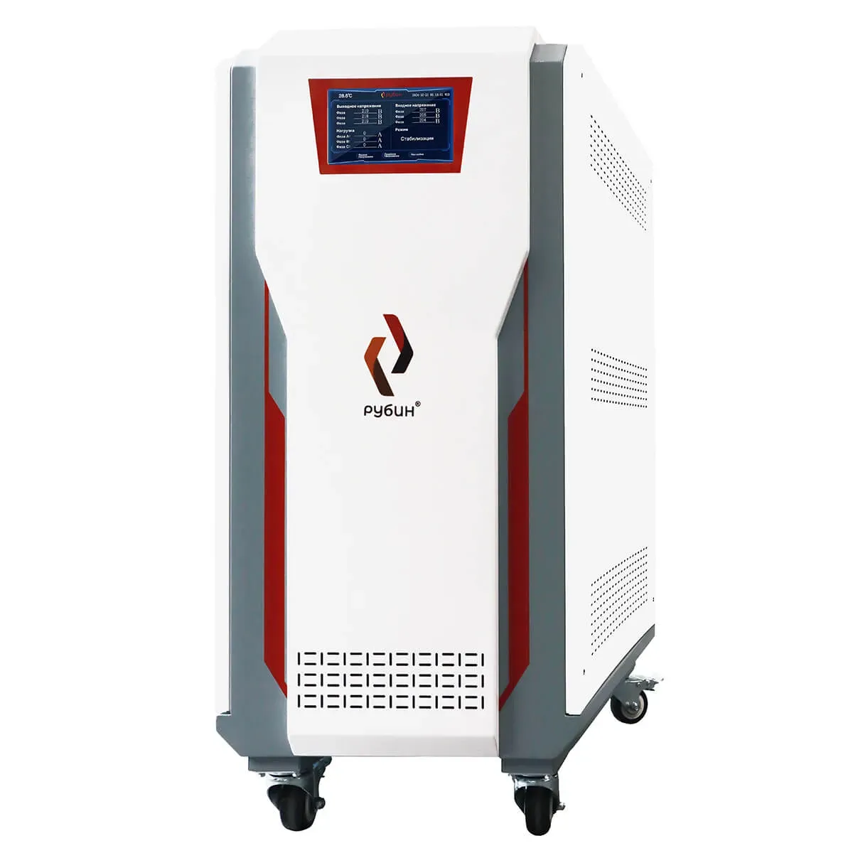 Стабилизатор напряжения Рубин ТСН предназначен для поддержания стабильного напряжения в трехфазных электросетях 380 Вольт в соответствии с ГОСТ 13109-97. Стабилизатор обеспечивает защиту от повышенного и пониженного напряжения, электрических помех, высоковольтных скачков и провалов входного напряжения. Тип стабилизатора: Тиристорный Мощность: 45 кВА (3145 кВт) Напряжение входа предельное (линейное), В: 270 - 310 Напряжение входа номинальное (линейное), В: 280 - 480 Напряжение входа предельное (фазное), В: 165 - 310 Напряжение входа номинальное (фазное), В: 170 - 300 Напряжение выхода (фазное), В: 220 ± 2% Напряжение выхода (линейное), В: 380 ± 2% Частота сети, Гц: 5060 Скорость реакции: 30 мс Технология «zero cross»: Есть Байпас: Есть (электронный) Подключение: Клемная колодка (L, N, PE) Перегрузочная способность: Перегрузка 20% до 30 мин Перегрузка 40% до 12 мин Перегрузка 60% до 7 мин Перегрузка 100% до 1.5 мин Перегрузка 200% менее 1 сек Тип нагрузки: Резистивная, емкостная, индукционная, смешанная Охлаждение: Конвекционное, принудительное Защита от повышенного напряжения: Электронная, при входном напряжении >247 В Защита от пониженного напряжения: Электронная, при входном напряжении <170 В Защита от перегрева: Электронная, при внутренней температуре > 120° С Защита от короткого замыкания: Электронная и автоматический выключатель Задержка включения: 5200 сек (настраивается) Температура эксплуатации, °С: -20+40 Температура хранения, °С: -30+80 Относительная влажность: < 80% (без образования кондесата) Класс защиты по ГОСТ 14254-96: IP20 Габариты (В×Ш×Г), мм: 520×770×1080 Вес нетто, кг: 224 Стабилизатор оснащен комплексом систем, обеспечивающим надежную, защиту как потребителей. так и самого стабилизатора от любых нештатных ситуаций и рассчитан на непрерывную круглосуточную работу в условиях больших по значению и длительности отклонений напряжения от номинального значения. Стабилизатор не требует специальных мер обслуживания, за исключением периодической наружной очистки вентиляционных отверстий от грязи и пыли.