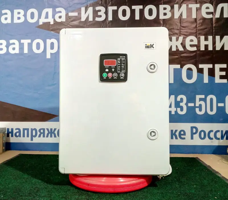 Блок автоматического запуска обеспечивает автоматический ввод резервного источника электропитания (бензиновый или дизельный генератор). Блок автоматического запуска собран в пластиковом электрическом ящике 400х300х170мм (размер и материал ящика может быть выбран заказчиком). Система запуска генератора построена на базе универсального контроллера DKG-105, обеспечивающего правильный запуск и работу генератора. В качестве силового исполнительного механизма, обеспечивающего переключение нагрузки, используется механизированный рубильник, 3 или 4 полюса, с номинальным током не менее 100А (зависит от технического задания). В ящик установлено зарядное устройство, обеспечивающее постоянное (при наличии городского напряжения) поддержание аккумуляторной батареи в заряженном состоянии. Провод обеспечивающий управление генератором, поставляемый в комплекте, имеет базовую длину 3 метра (длина зависит от технического задания). Технические характеристики, стандартного комплекта. Другие значения оговариваются отдельно. Напряжение питания сети: AC 140-270 В (Линейное) Напряжение питание генератора: 12 В Номинальная частота сети/генератора: 50 Гц +-10 Гц Максимальный ток коммутируемой нагрузки: 100 А Максимальный ток управления генератором : 15 А Максимальный ток заряда аккумуляторной батареи: 1 А Длина управляющего провода: 3 м Температура эксплуатации: -20 С до 70 С Максимальная влажность: 95% без конденсата Габариты: 400х300х180 мм (ВхШхГ) Вес: 2,5 кг Назначение кнопок - принцип работы. Контроллер (DKG-105) установленный в блок автоматического запуска имеет кнопки, позволяющие управлять работай системы и настраивать параметры работы. ЗАПУСК (RUN) Нажатие этой кнопки обеспечивает включение генератора в тестовом режиме, нагрузка не подключается к генератору. Кнопка производит тестовый запуск. В режиме программирование уменьшает значение, отображаемое на экране. ВЫКЛ (OFF) Кнопка производит выключение режимов RUN или AUTO, если в этот момент работает генератор производится его выключение. При появлении ошибок, связанных с неудачным запуском, кнопка сбрасывает ошибки. АВТО (AUTO) В этом режиме система контролирует параметры электрической сети, производится отслеживание напряжения на всех фазах. Если измеренное значение выходит за пределы установленной уставки в контроллере, производится запуск генератора (5 попыток запуска). При удачном запуске генератора, он прогревается (30 секунд), потом подключается нагрузка. Если запуск генератора не состоялся, на контроллере будет включен индикатор ошибки. В режиме программирование увеличивает значение, отображаемое на экране. МЕНЮ (MENU) Этой кнопкой можно просматривать уровни напряжений и частоты. В режиме программирования, кнопкой производится выбор настраиваемого параметра. Неисправности и их устранение. Во время работы генератора могут возникать условия, при которых произойдет выключение генератора. Закончился бензин. Генератор выключился. На контроллере появится ошибка. Нужно нажать кнопку ВЫКЛ, потом залить топливо в бак генератора. Убедиться, что топливо не разлилось и не попало на элементы генератора. После этого нажать кнопку АВТО. Произойдет повторный запуск генератора, и после прогрева, подключится нагрузка. Отключился автоматический выключатель на генераторе. Генератор выключился. На контроллере появится оши
