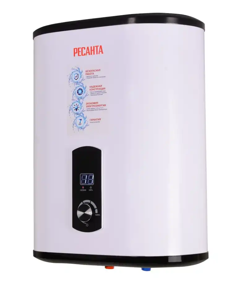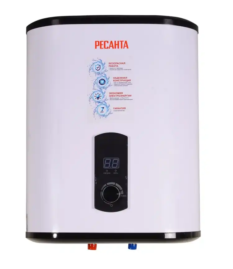 Электрический водонагреватель накопительного типа Ресанта ВН-30В предназначен для нагрева холодной воды, из водопровода. Используется в бытовых целях в местах постоянного и временного проживания, в гостиницах и других жилых помещениях. По способу нагрева воды водонагреватели делят на: Проточные, Накопительные В накопительном вода греется в течение некоторого времени, находясь в емкости с работающими нагревательными элементами. Такие водонагреватели позволяют прогреть воду в среднем до +75°С. Водонагреватели Ресанта относятся к накопительному типу. Проточные водонагреватели греют воду «налету», включаясь от протока воды и выключаясь автоматически при закрытии крана, поэтому такой тип водонагревателя преимущественно не рассчитан на высокие температуры. В среднем проточные водонагреватели прогревают воду до 40-50°С. Объем бака, л 30 Время нагрева 45 мин Материал бака нержавеющая сталь Тип крепления вертикальное Вес нетто 8.8 кг Мощность, Вт 2000 Гарантия, мес. 12 Гарантия на бак мес 84 Бренд Ресанта Страна бренда Латвия Страна производства Китай Электропитание 220-230 В, 50 Гц Максимальная температура нагрева До 75 °С Подвод воды снизу Форма плоская Размеры в коробке мм 440 х 260 х 550
