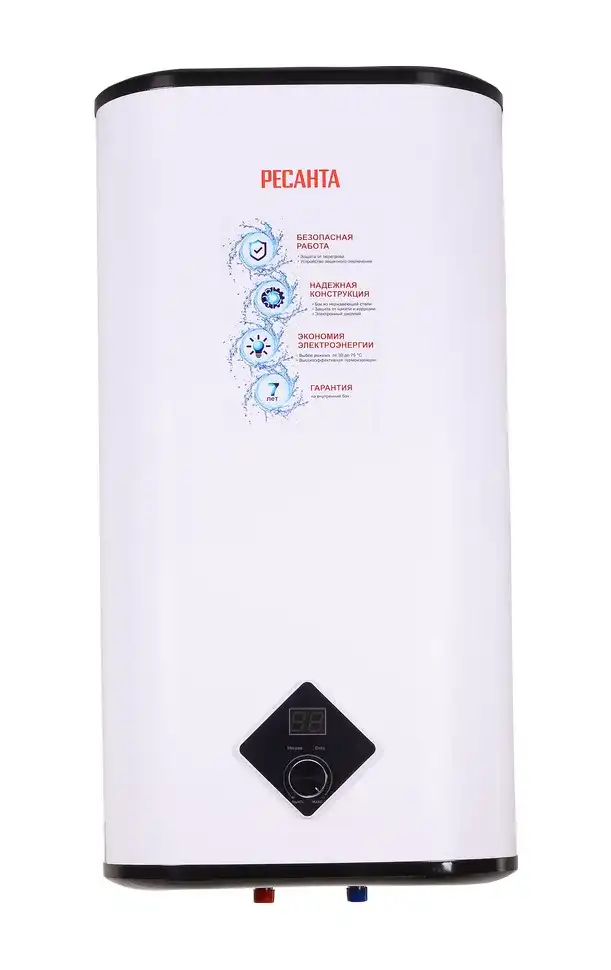 Электрический водонагреватель накопительного типа предназначен для нагрева холодной воды, поступающей в него из водопровода. Используется в бытовых целях в местах постоянного и временного проживания; в гостиницах и других жилых помещениях Объем бака, л 50 Время нагрева 63 мин Материал бака нержавеющая сталь Тип крепления вертикальное Вес нетто 11.7 кг Мощность, Вт 2000 Гарантия, мес. 12 Бренд Ресанта Страна бренда Латвия Страна производства Китай Электропитание 220-230 В, 50Гц Максимальная температура нагрева До 75 °С Подвод воды снизу Форма плоская Преимущества стандартных водонагревателей Ресанта: Магниевый анод против коррозии Надежная термоизоляция Устройство аварийного отключения Защита от перегрева