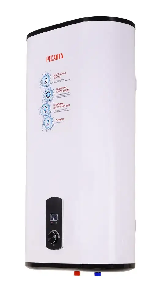 В ассортименте товаров Ресанта появилась новая категория электрические накопительные водонагреватели. Компактные модели объемом 10-15 л и стандартные от 30 до 100 л. Компактные водонагреватели 10 л (ВН-10В / ВН-10Н) и 15 л (ВН15В / ВН-15Н) различаются по месту размещения/подводу воды нижнему (Н - в названии, при этом водонагреватель располагается над раковиной) и верхнему (В в названии, при этом водонагреватель располагается под раковиной). Объем бака, л 80 Время нагрева 98 мин Материал бака нержавеющая сталь Тип крепления вертикальное Вес нетто 16 кг Мощность, Вт 2000 Гарантия, мес. 12 Бренд Ресанта Страна бренда Латвия Страна производства Китай Габариты, мм 490 х 300 х 970 Электропитание 220-230 В, 50 Гц Максимальная температура нагрева До 75 °С Подвод воды снизу Форма плоская Преимущества компактных водонагревателей Ресанта: Магниевый анод против коррозии Надежная термоизоляция Защита от перегрева Небольшой размер, позволяющий разместить водонагреватель в ограниченном пространстве. Гарантия на бак 7 лет