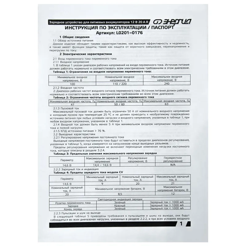 Charger 12V 20A R Старт 30 РТ- предназначено для зарядки литиевых аккумуляторов 12 В с током зарядки 20 А. Оно обеспечивает номинальное выходное напряжение 14,6 В и может автоматически адаптироваться к различным входным напряжениям от 100 до 240 В переменного тока. Артикул L0201-0176 Напряжение питания, В 100-240 Выходное напряжение, В 14,6 Максимальный ток, А 20 Зарядный ток, А 9-21 Иес 12,43 Габариты мм 63 х 220 х 120
